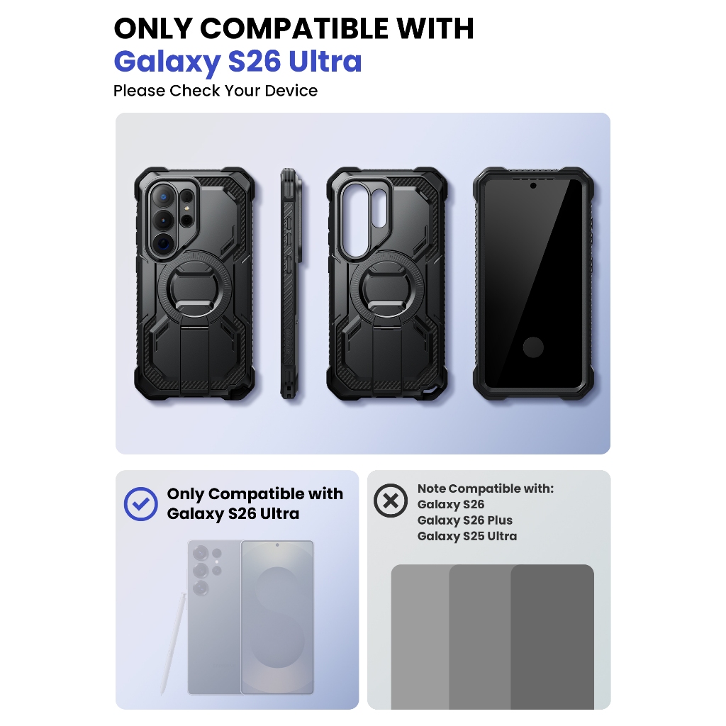 I-Blason Armorbox คลิปสําหรับ Samsung Galaxy S26 Ultra Case รองรับการชาร์จไร้สายพร้อมคลิปเข็มขัดในตัวป้องกันหน้าจอขาตั้งแบบปรับได้ฝาครอบเต็มตัวสําหรับ S26 Ultra 6.9′′