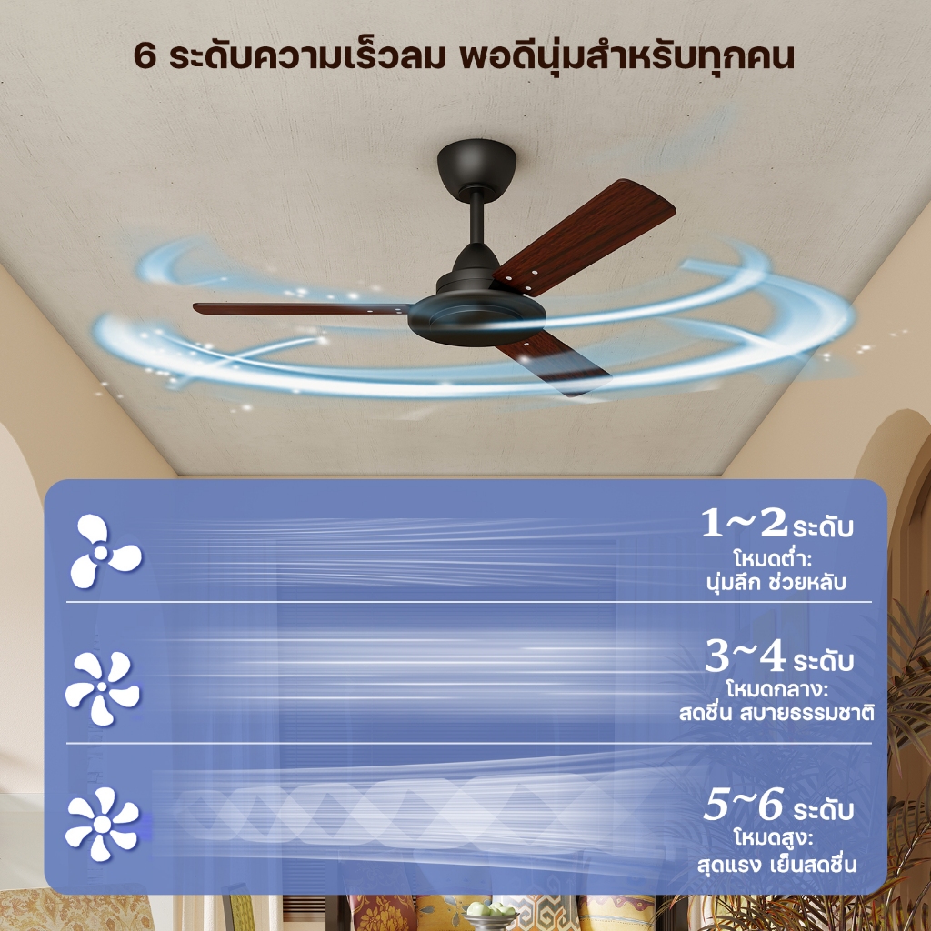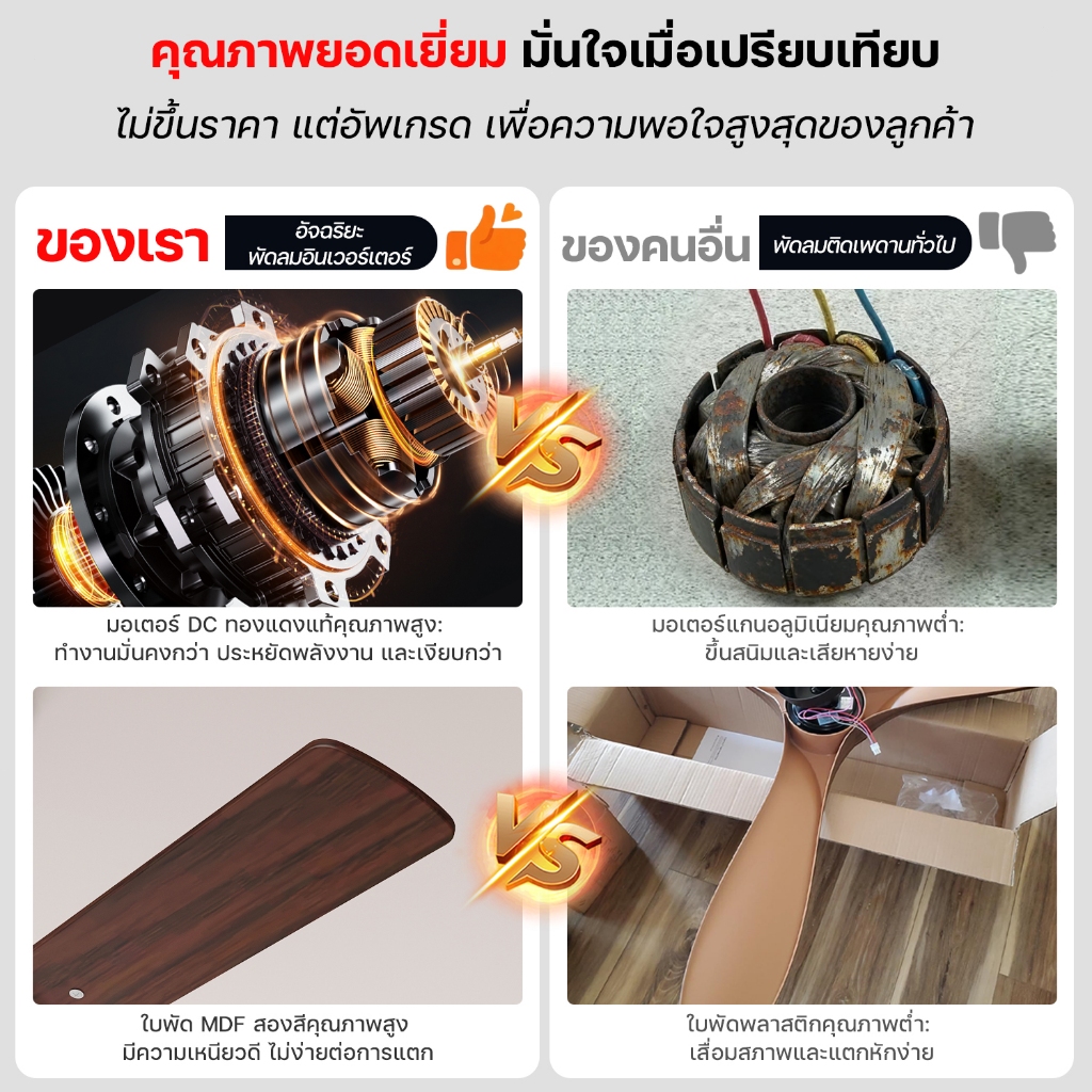 HITEL สไตล์อเมริกันวินเทจ พัดลมเพดานสีน้ำตาล 42 นิ้ว ใบพัด MDF ไม้แท้ มอเตอร์ DC 6 ระดับความเร็วปรับได้ ปิดเสียง🌿
