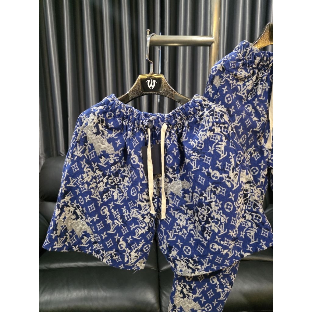 กางเกงยีนส์ผ้าทอ Lyv ขาสั้นขายาว โมโนแกรมสีน้ำเงิน
