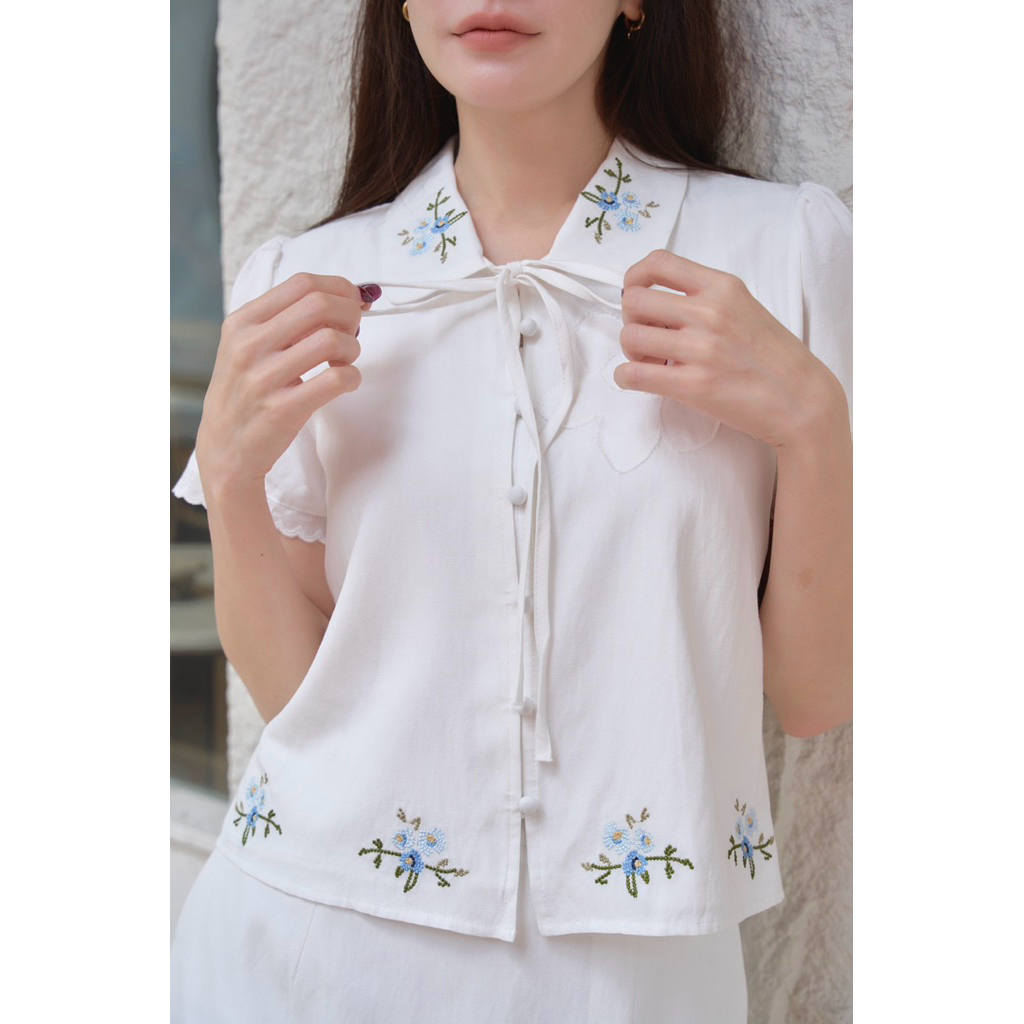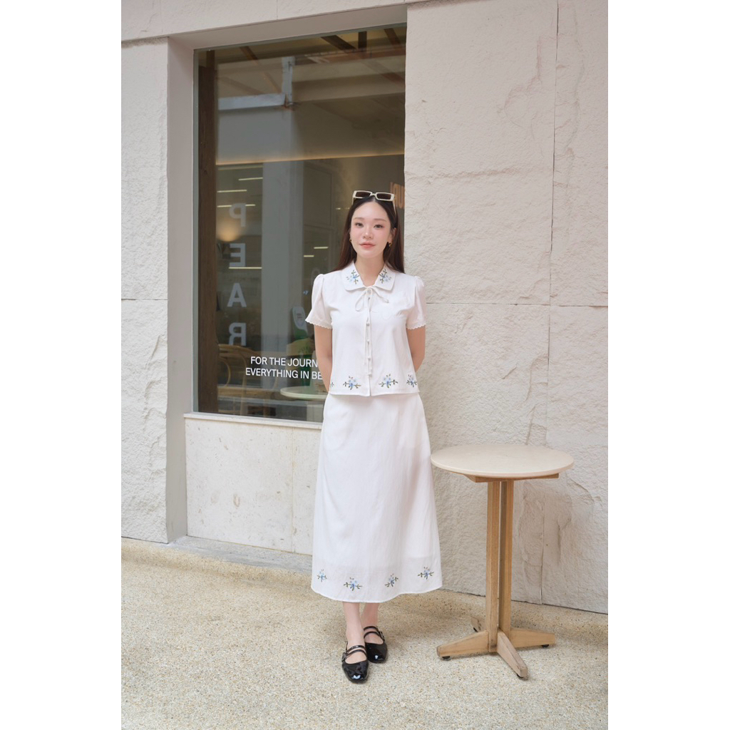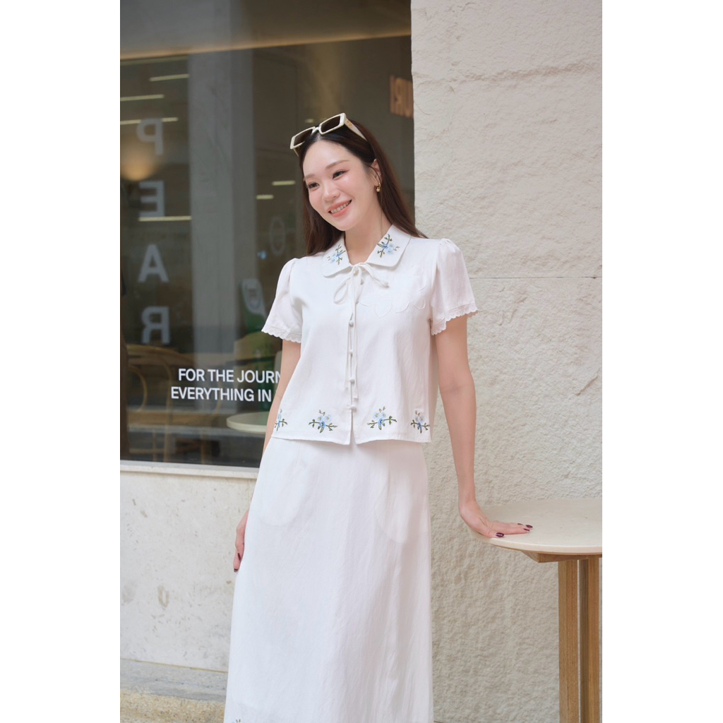 ร229 โทนสีขาว “บิงซูเซท ”🌸 เซทเสื้อเชิ้ตทรงปล่อย ปักลายดอกไม้ถูกโบว์ได้ #ผ้าคอตตอนพรีเมี่ยมปักนิ่มฝุดๆ