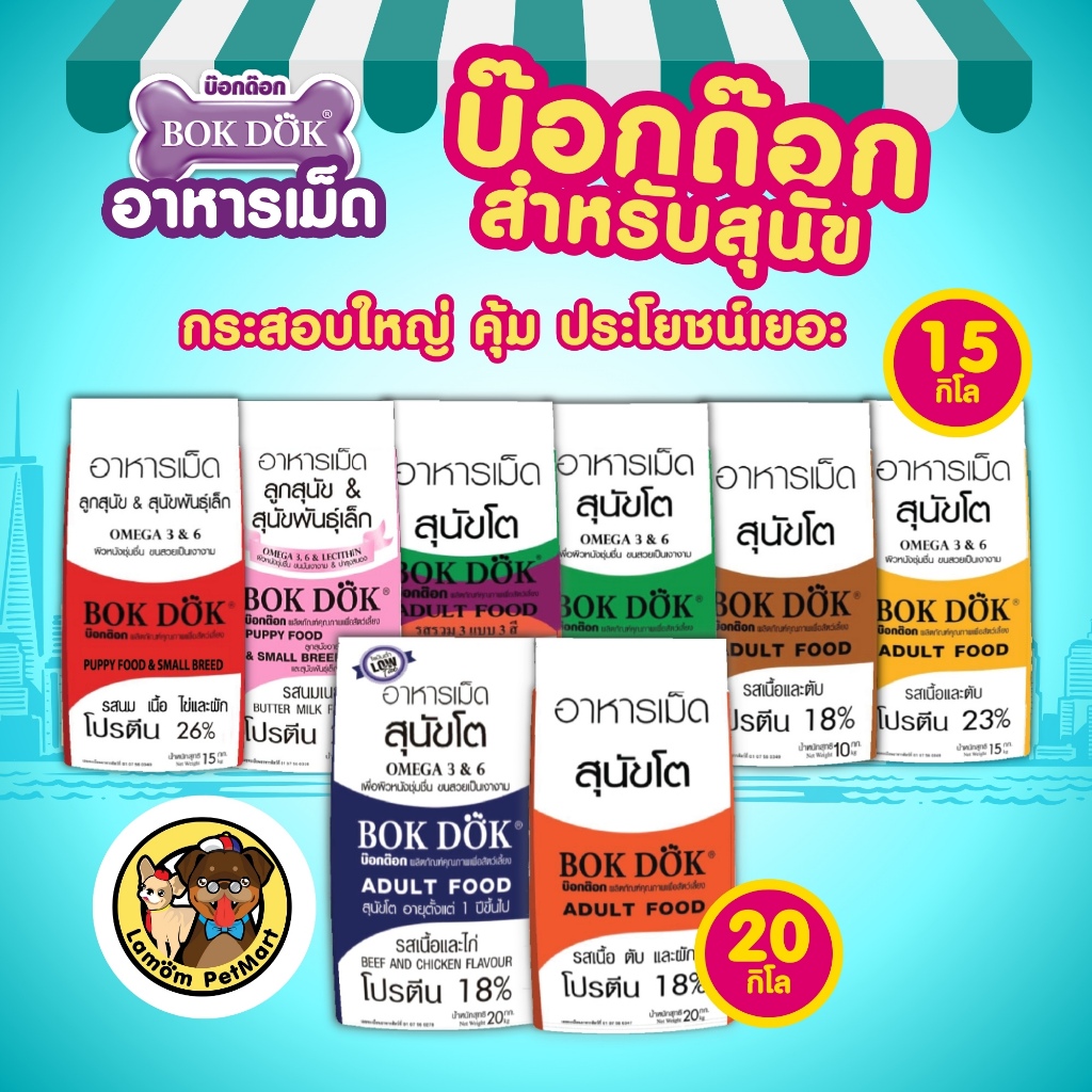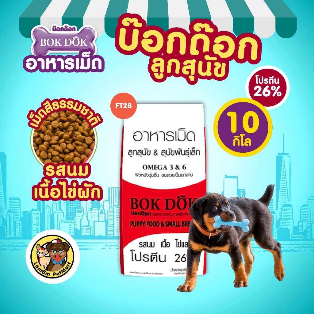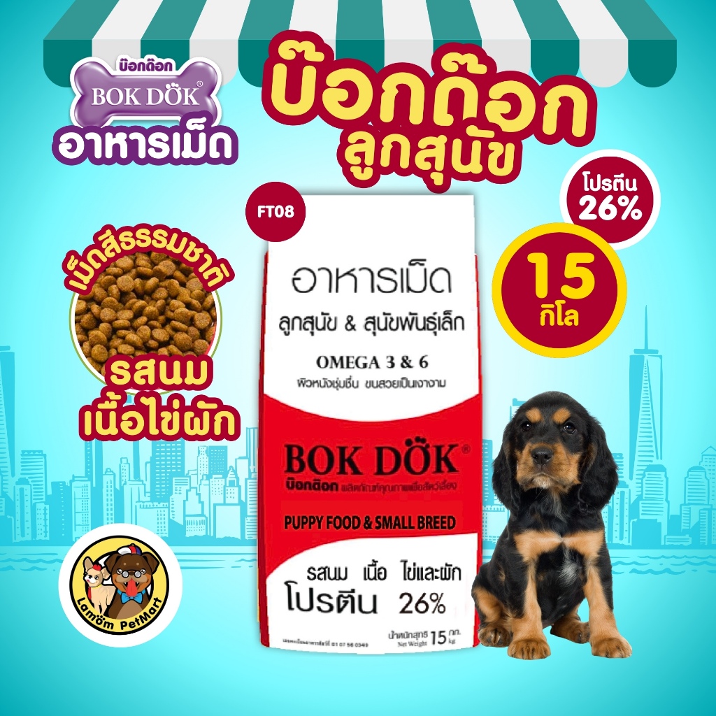(กระสอบ 15kg/10kg.) อาหารเม็ดลูกสุนัข BOKDOK FT08/FT28 รสนม เนื้อ ไข่ ผัก โปรตีน 26% ขนนุ่มเงางาม