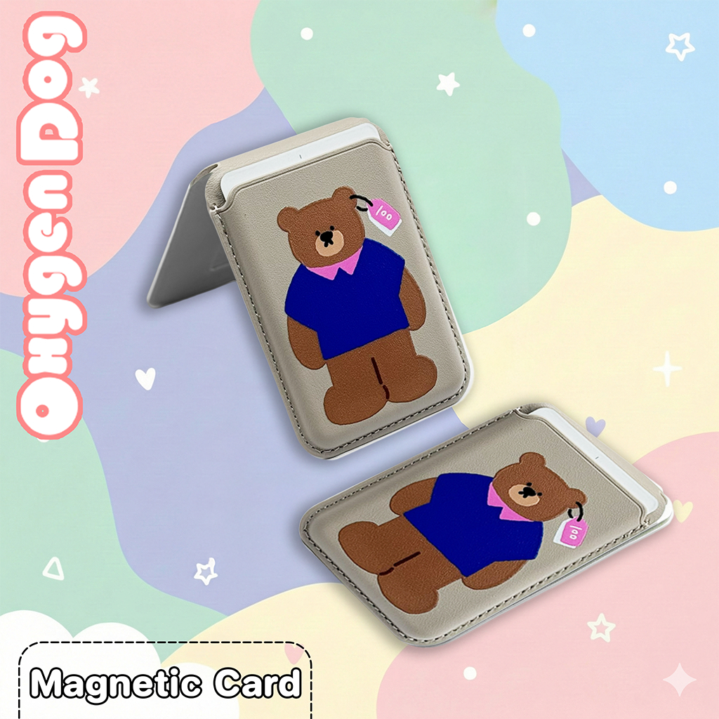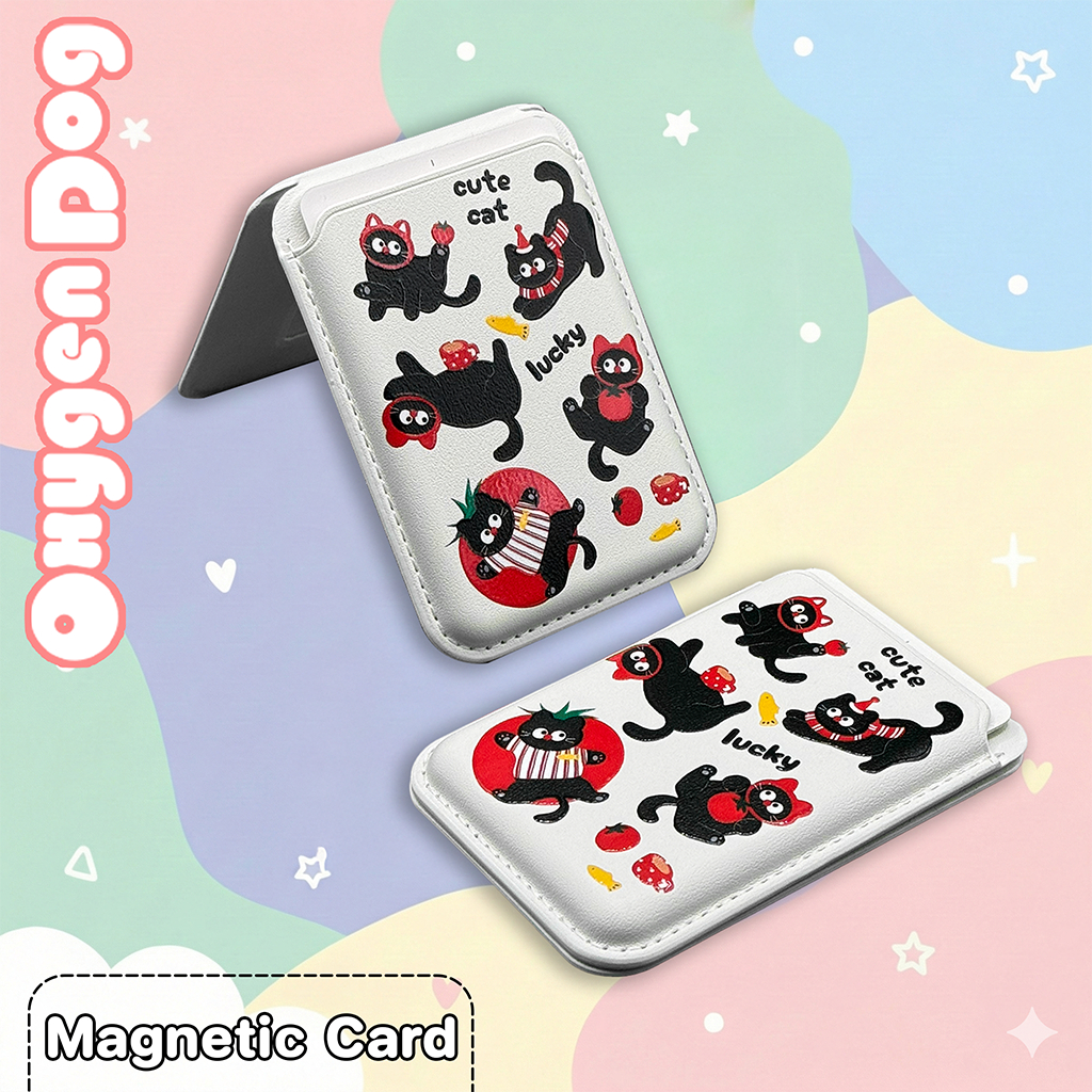 Oxygendog Wallet Magnetic สกีนลาย UU ซองใส่บัตรแบบหนัง ตั้งพับเก็บได้ สำหรับเคสมือถือที่เป็นแม่เหล็ก
