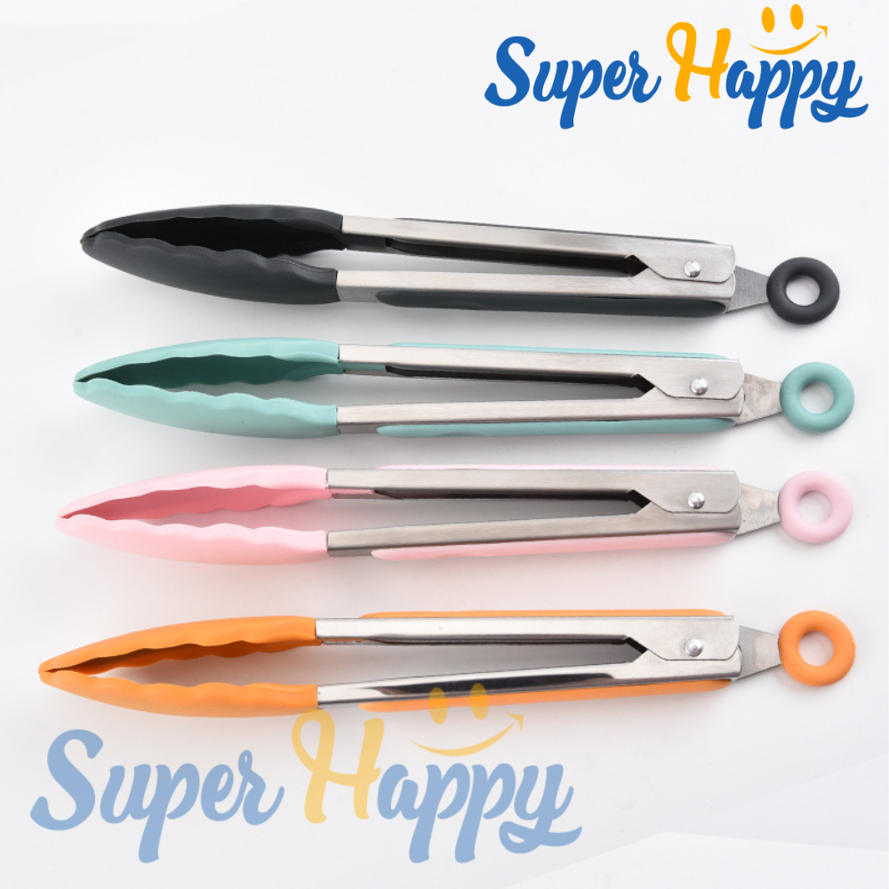 ที่คีบอาหารซิลิโคน 27 ซม. ด้ามสแตนเลส | คีบปิ้งย่าง บาร์บีคิว หม้อทอดไร้น้ำมัน ทนความร้อน มีห่วงล็อ