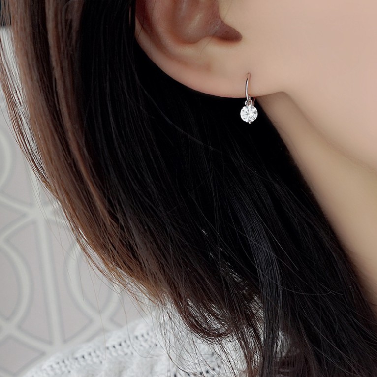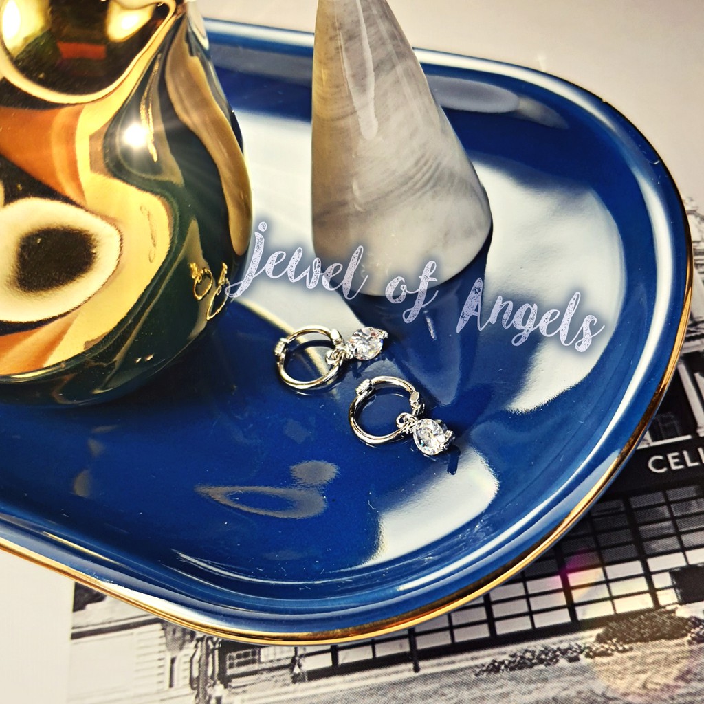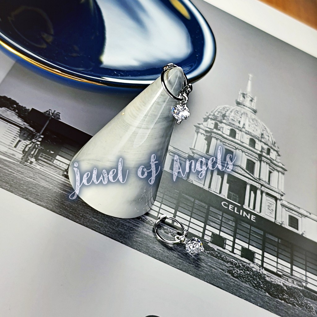 [พร้อมส่ง] ต่างหูก้านเงิน S925 ตุ้มหูห่วงเพชรCZกลม จิวหูก้านเงินแท้ S925