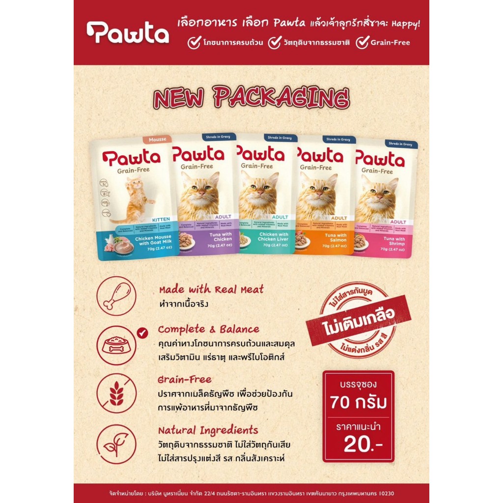 Pawta พอวต้า อาหารแมวชนิดเปียกบรรจุซอง 70gx12ซอง