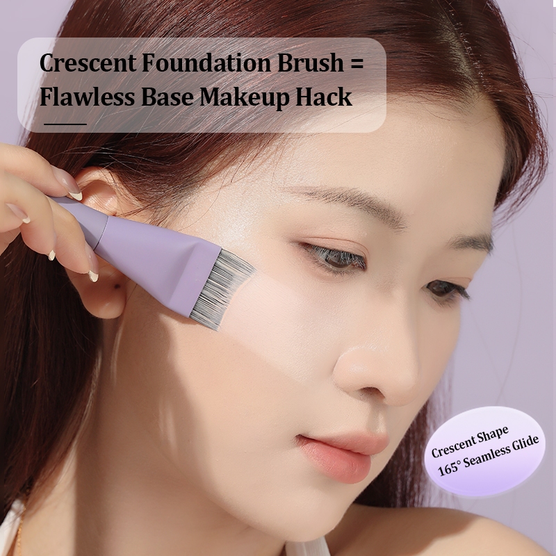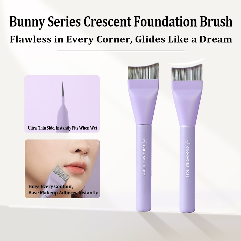 GUOXIAONU แปรงฟาวน์เดชั่นรูปครีเซนต์ ขนนุ่มบางพิเศษ สำหรับแต่งหน้าเบส คอนซีลเลอร์ไร้ตำหนิ และการใช้งานฟาวน์เดชั่นเหลว