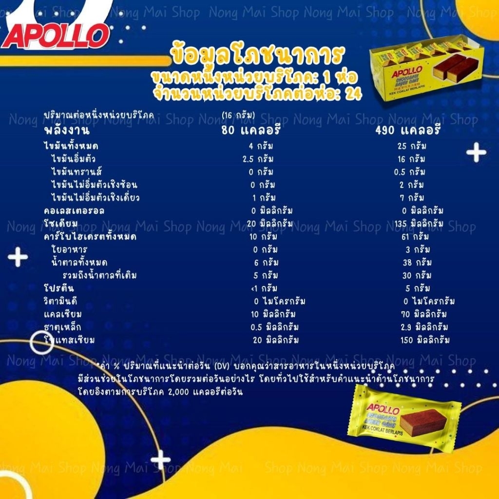 Apollo Chocolate Layer cake เค้กช็อคยกลัง12กล่อง