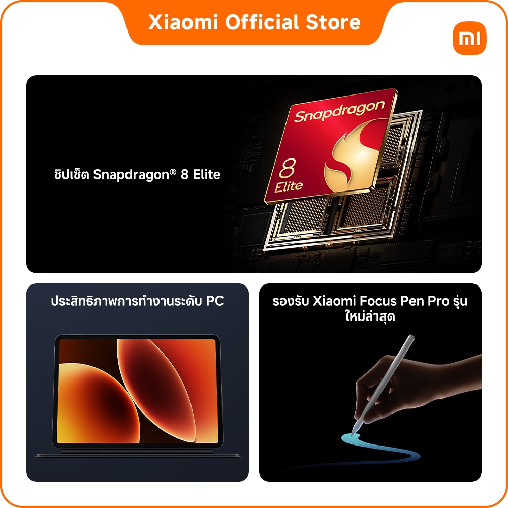 [NEW] Xiaomi Pad 8 Pro 8+256/12+512 ชิปเซ็ต Snapdragon® 8 Elite | ประสิทธิภาพการทำงานระดับ PC