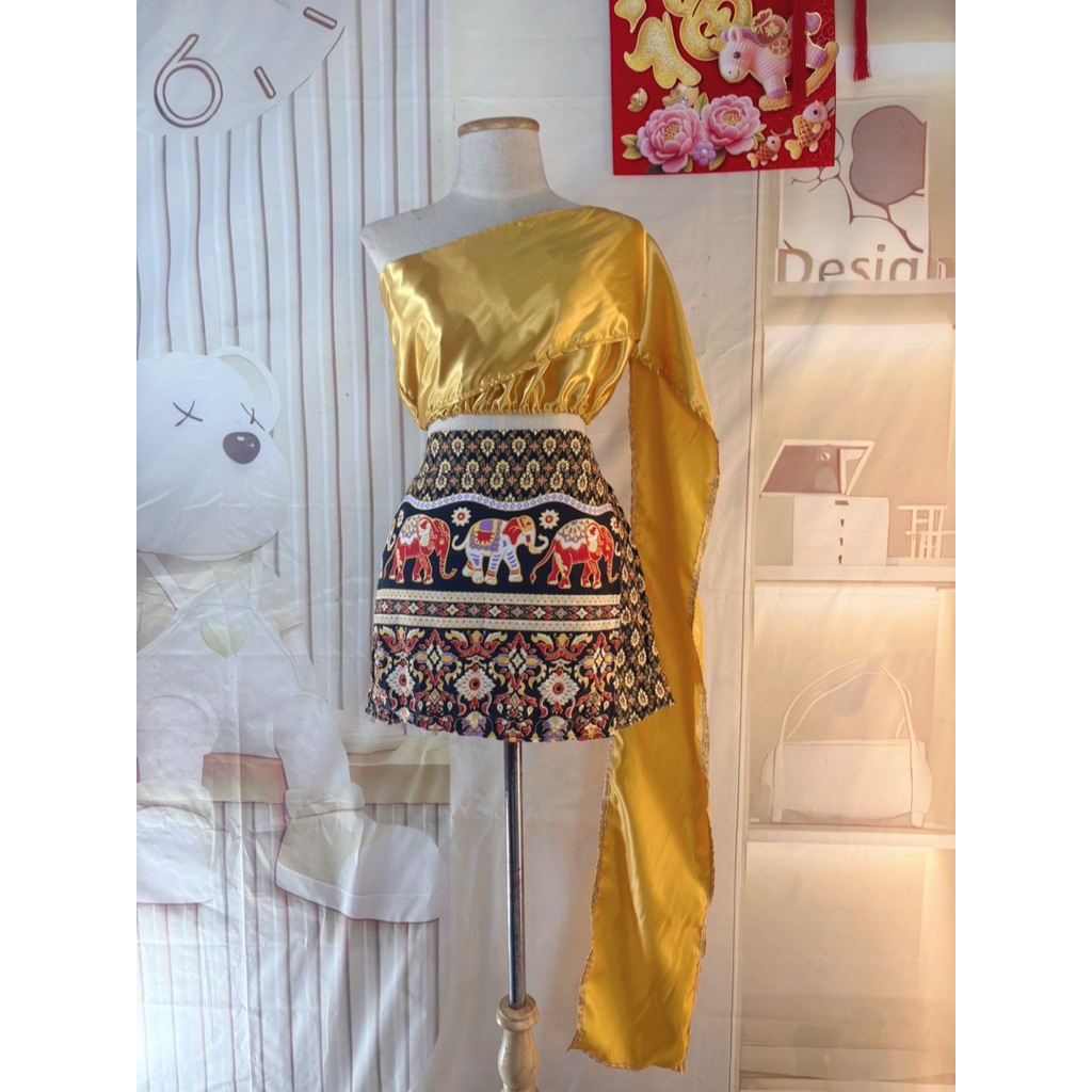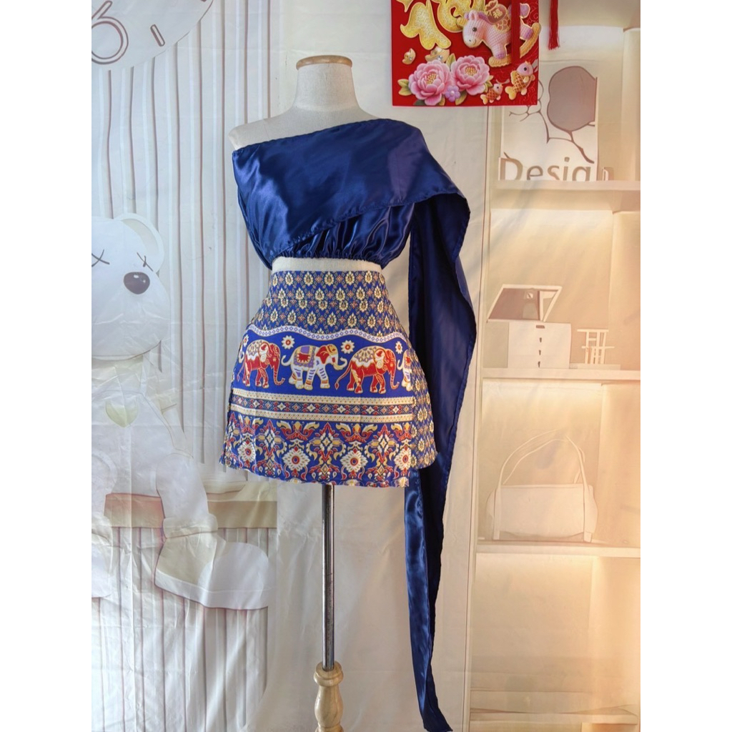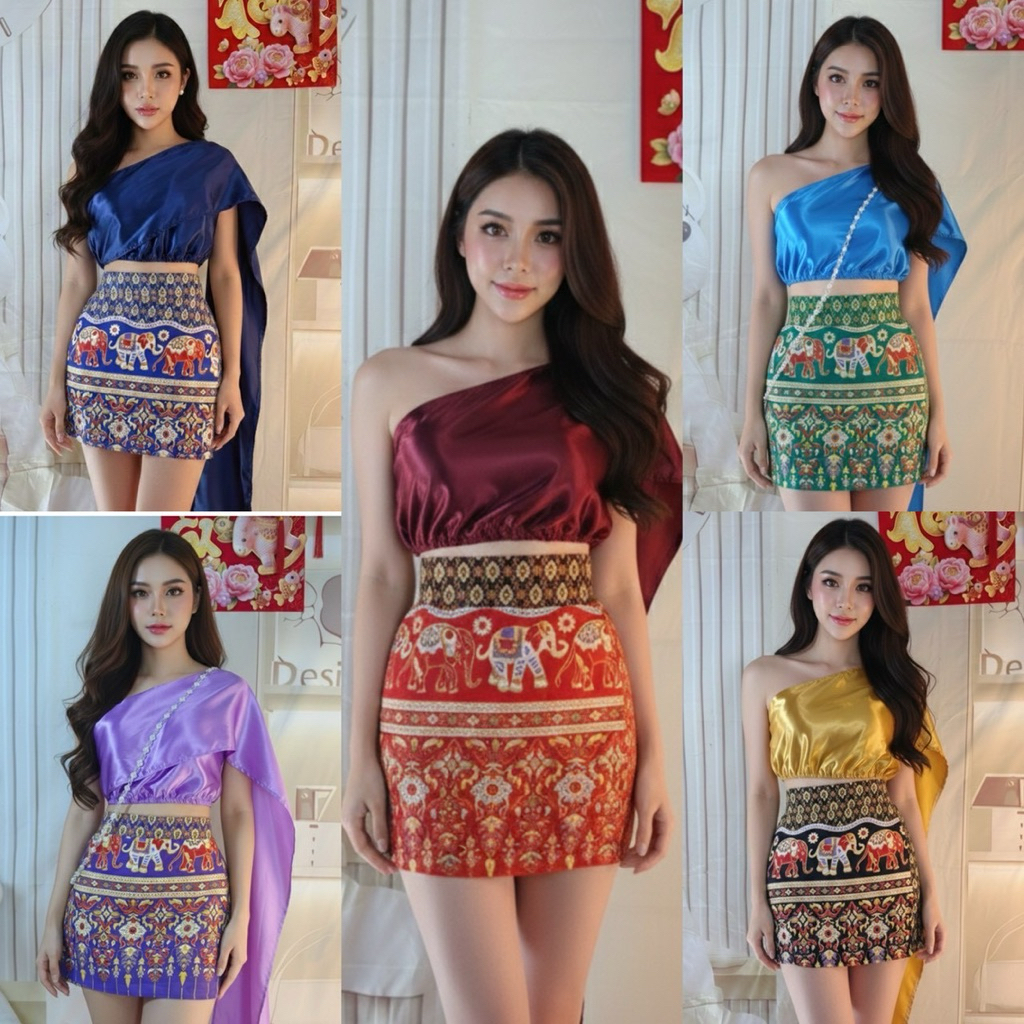 งาน 2 ชิ้น สไบเกาะอกสำเร็จ + กระโปรงกางเกงลายช้าง งานกระแส ต้อนรับสงกรานต์ RZ 02 Vai shop