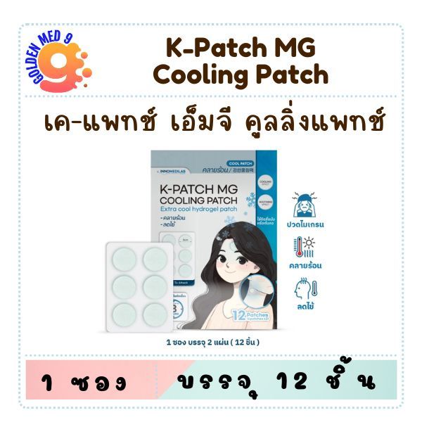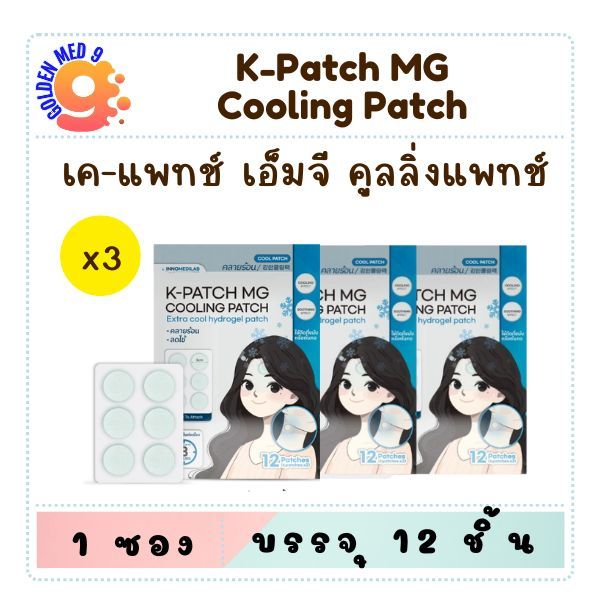 K-PATCH MG Cooling patch เค-แพทช์ แผ่นแปะไมเกรน ลดไข้ คลายร้อน แผ่นแปะ แก้ปวด ( 1ซอง 2แผ่น 12ชิ้น )