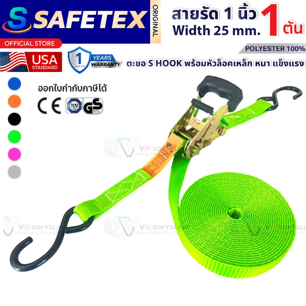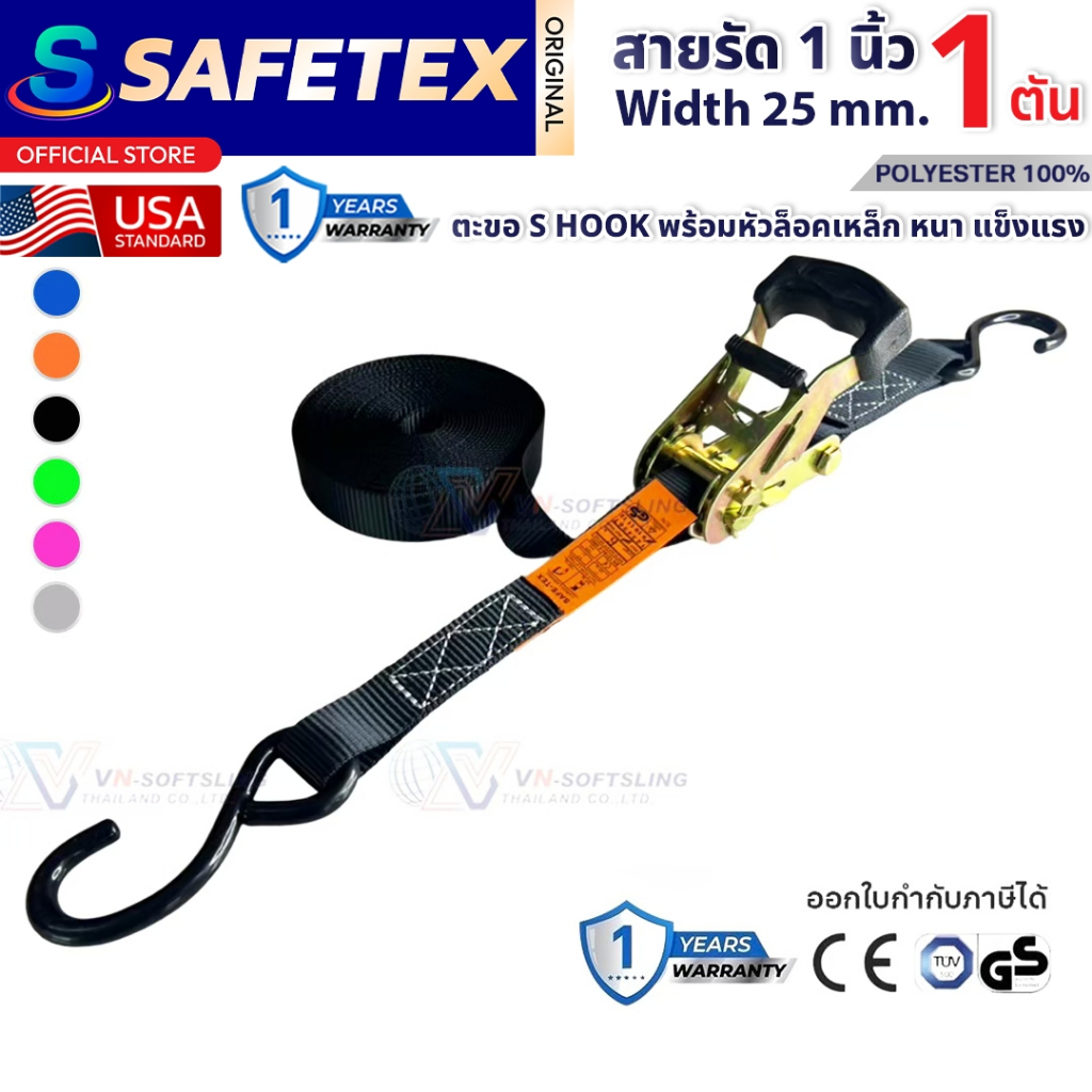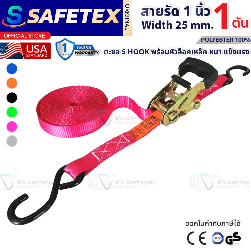 สายรัดก๊อกแก๊ก 1 ตัน (รุ่นหัวหนา ตะขอเอส) SAFETEX USA สายรัดของ สายรัดมอไซด์ สายรัดอเนกประสงค์