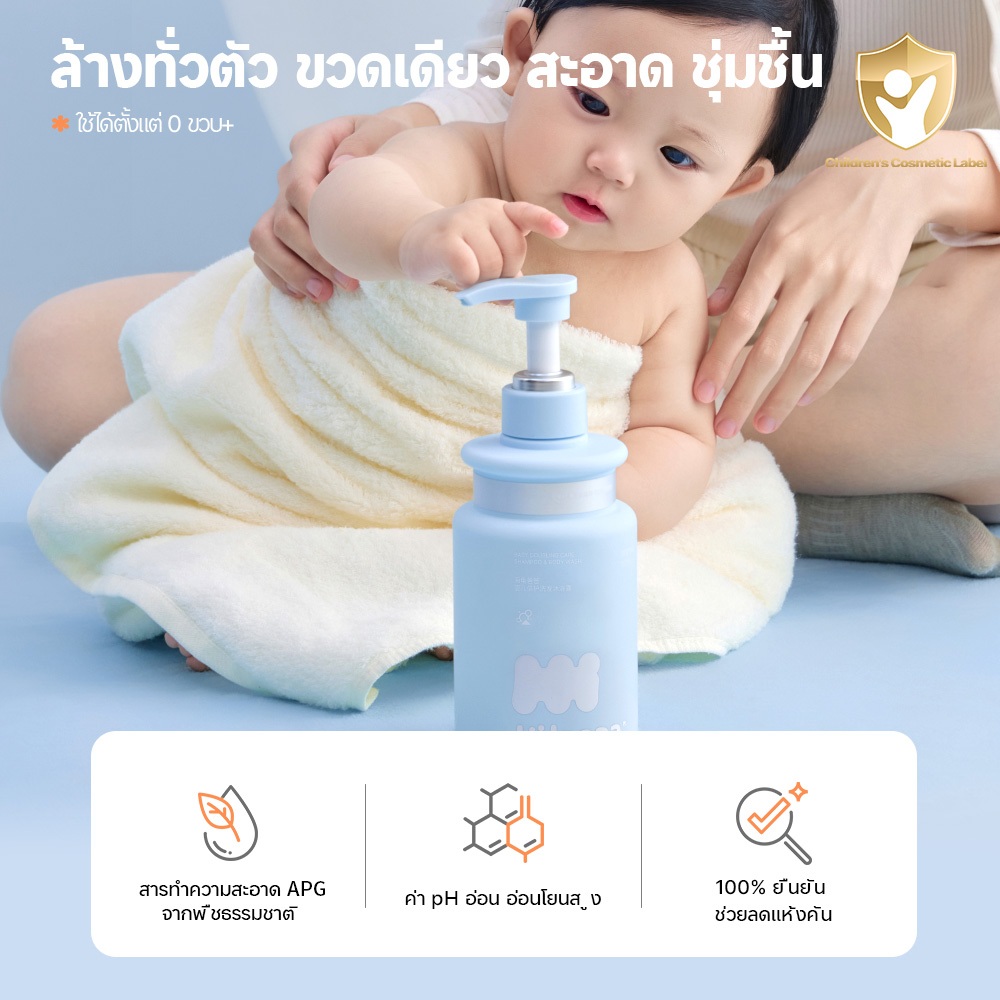 Hi!papa Baby Shampoo & Body Wash 2-in-1 แชมพูอาบน้ำเด็ก pH5.5 สูตรจากพืช หอมสดชื่น ชุ่มชื้น ไม่ตึงผิว 500 มล.