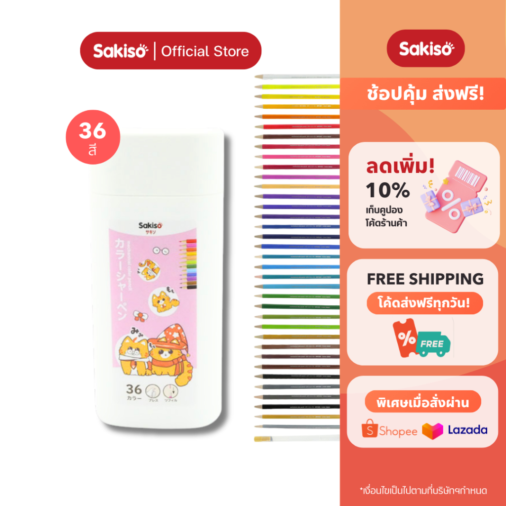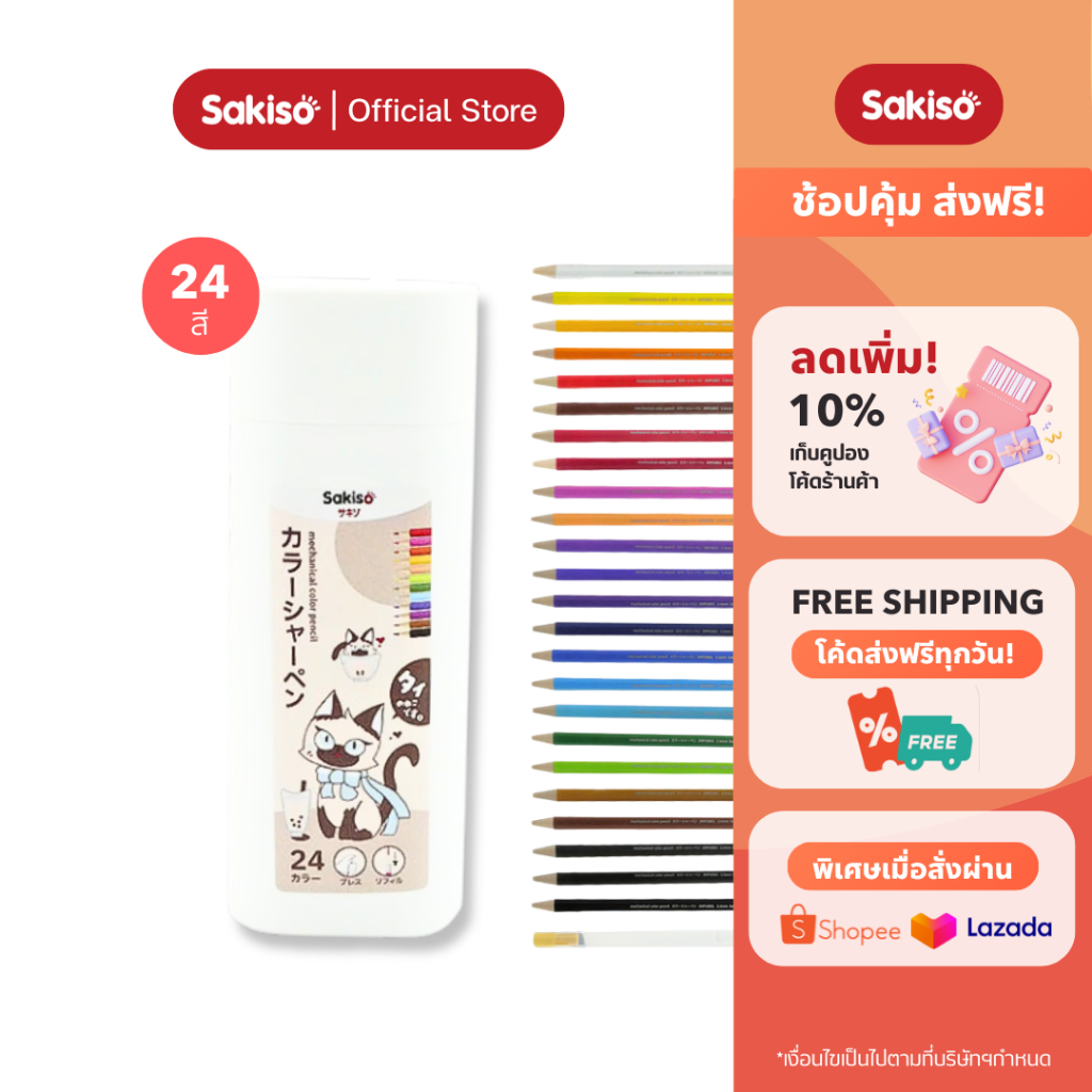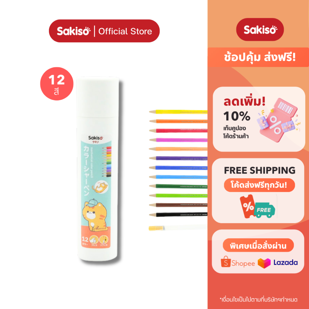 Sakiso ดินสอสีไม้แบบกด ไม่ต้องเหลา แถมกบเหลาด้ามให้