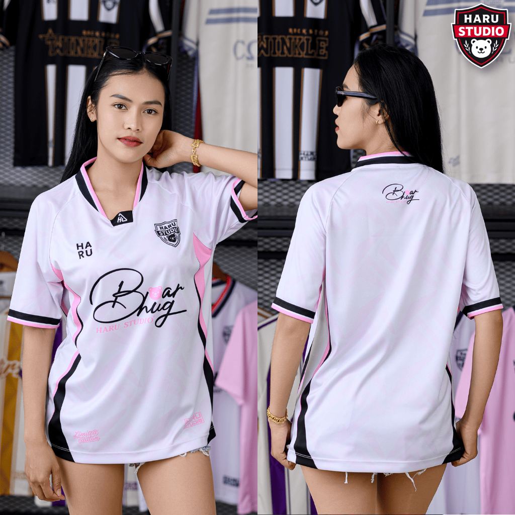 HARU เสื้อยืดคอวีเจาะสาบพิมพ์ลาย Bearhug ผ้าพิเศษ ไม่ต้องรีด ใส่ได้ทั้งหญิงและชาย