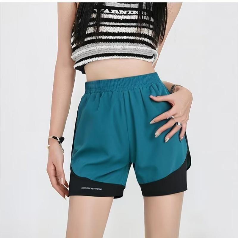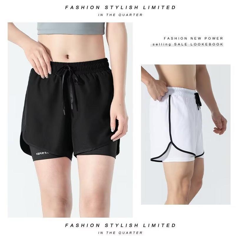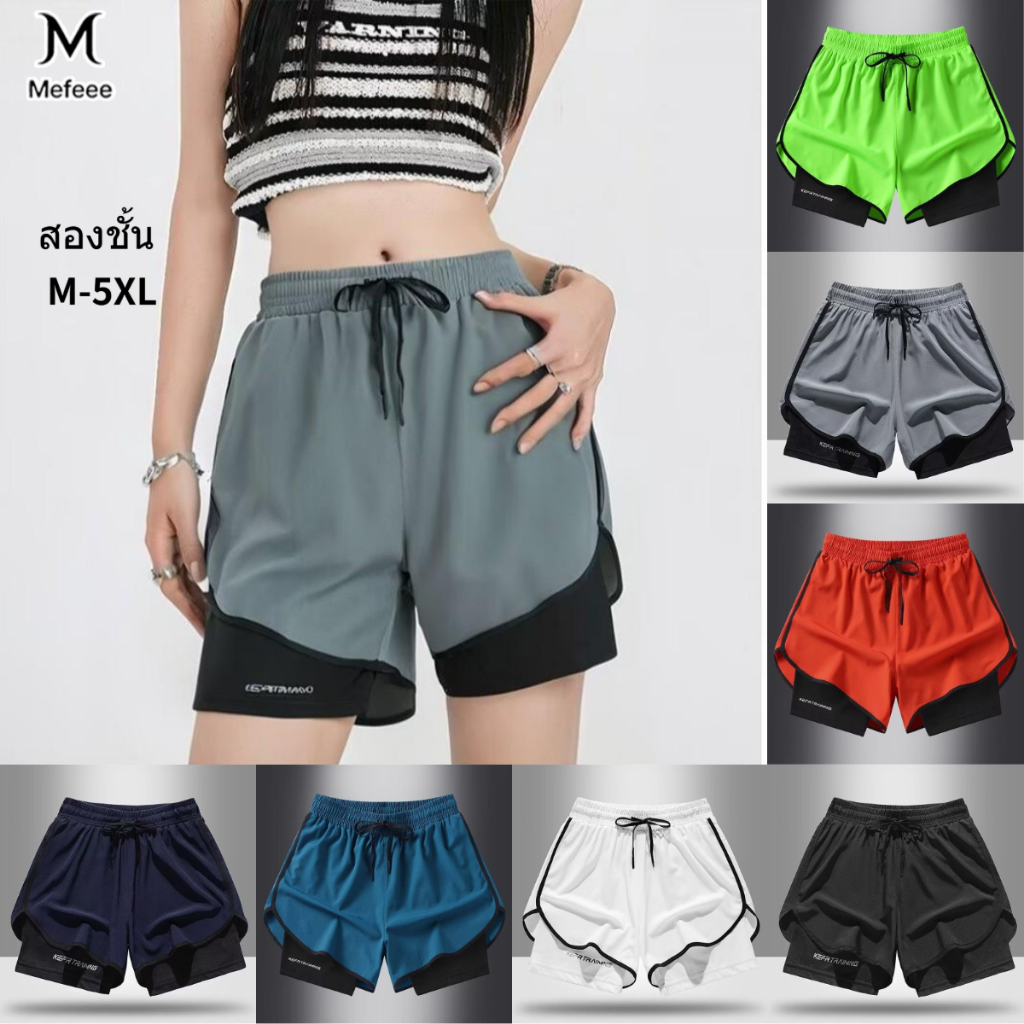 [7 สี] สองชั้น กางเกงขาสั้นแห้งเร็วสำหรับผู้ชายและผู้หญิง ออกแบบAnti-slip ใช้ได้ทั้งวิ่งและว่ายน้ำ ทรงหลวมสวมใส่สบายในบ้าน