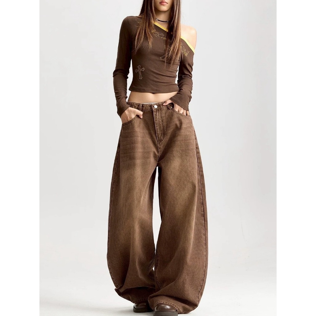 (พร้อมส่ง) Corduroy denim pants ยีนส์ทรงพองรุ่น 61880 TAG FSY 🇰🇷