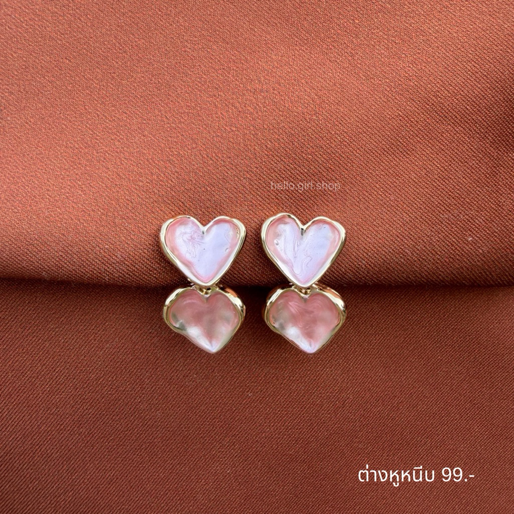 ( ต่างหูหนีบ ขดลวด ) ต่างหูหัวใจชมพู