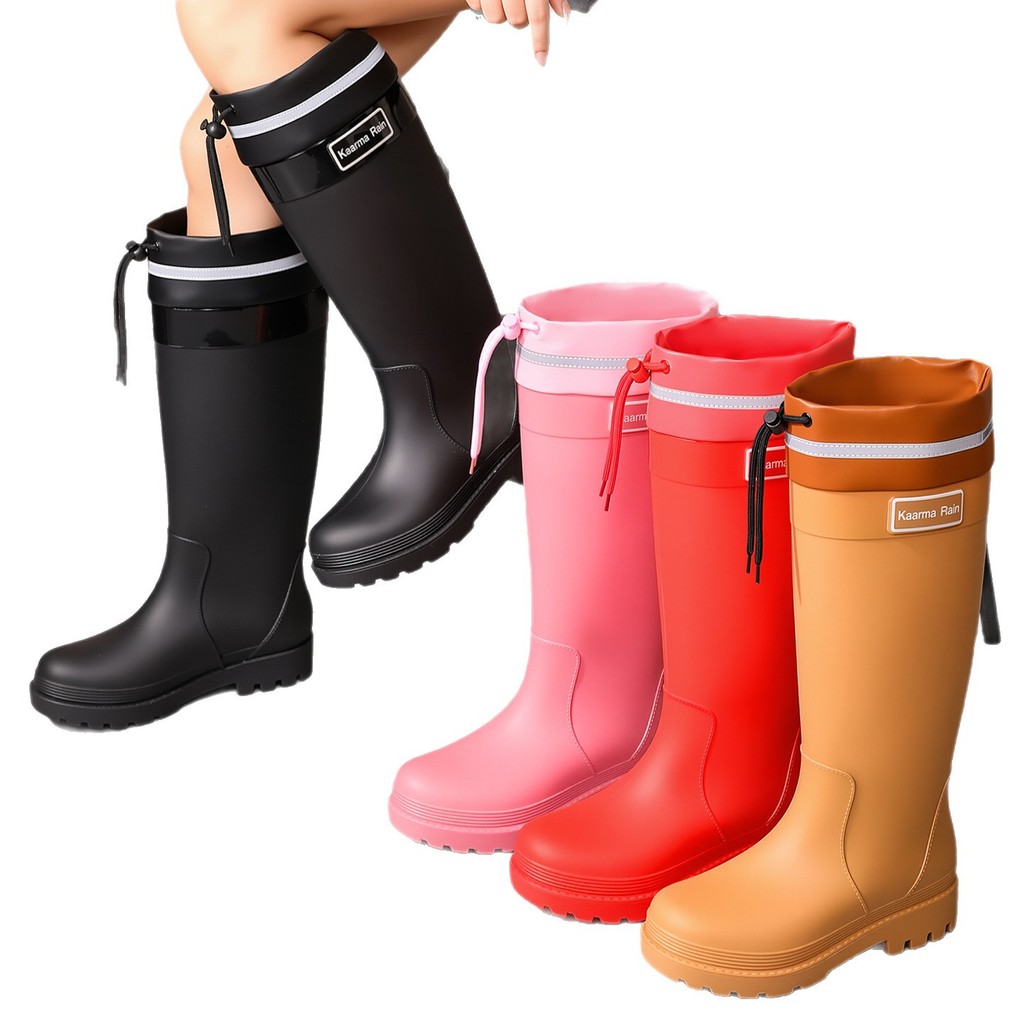 รองเท้าฝนสำหรับหญิง แบบสูง กันลื่นและกันน้ำ อุ่นๆ สวมใส่ง่ายในห้องครัวและนอกบ้าน lingmeimy