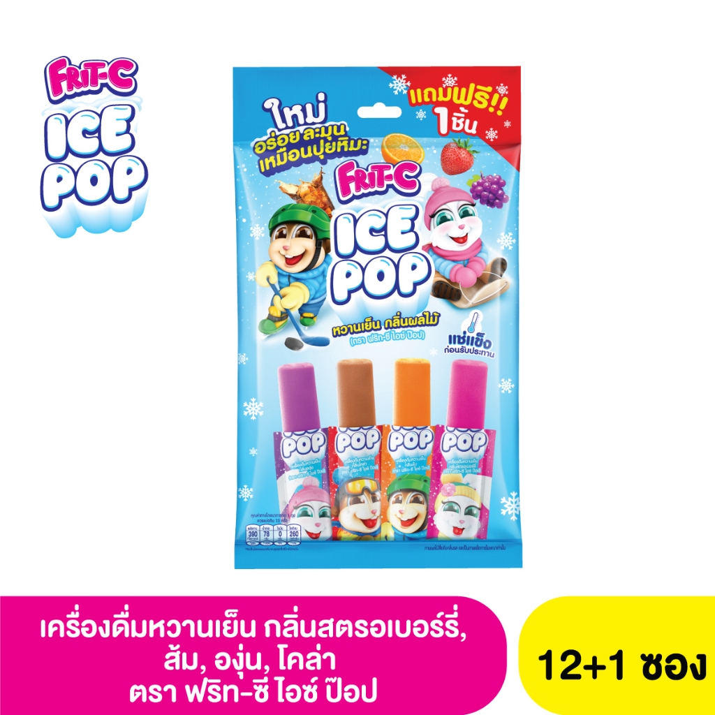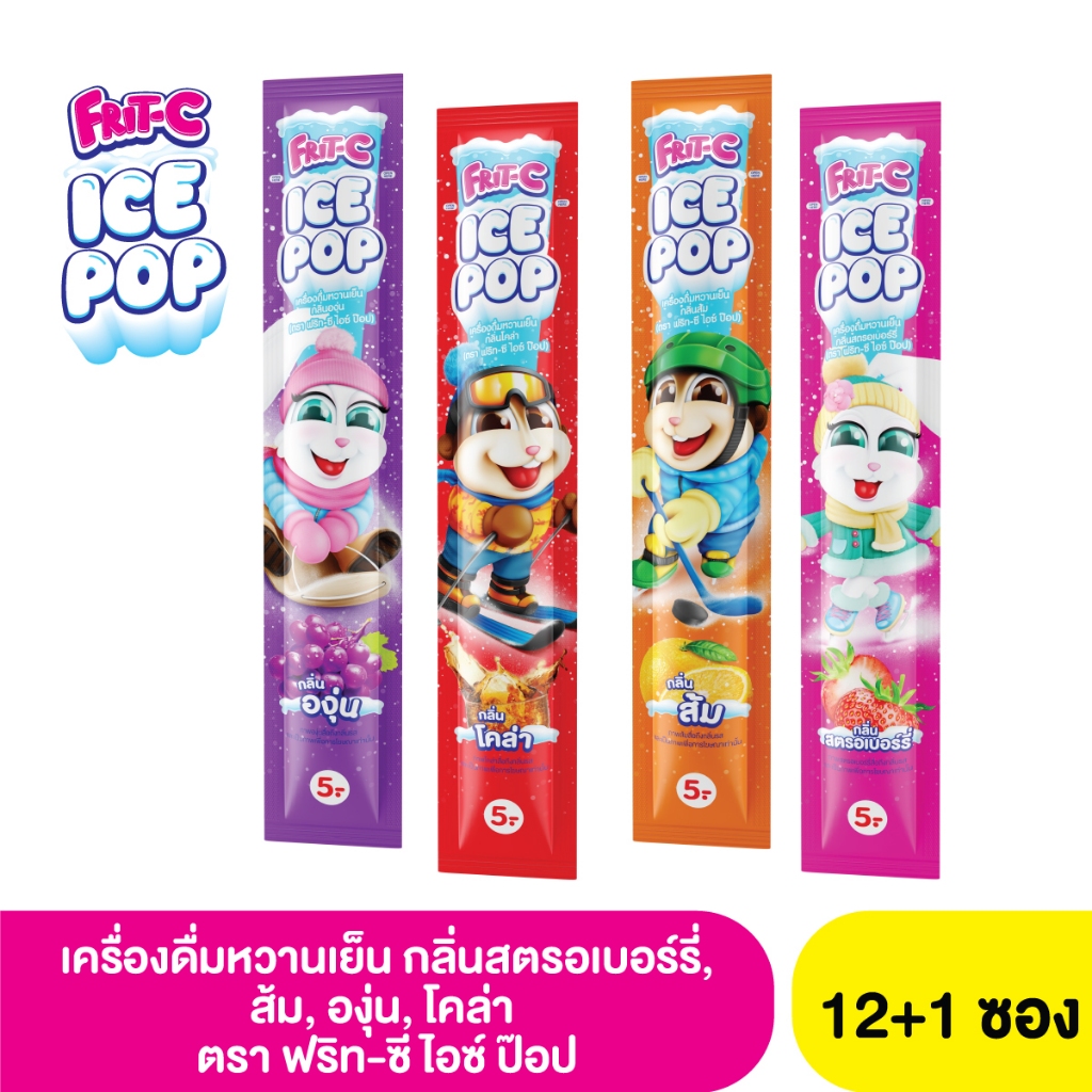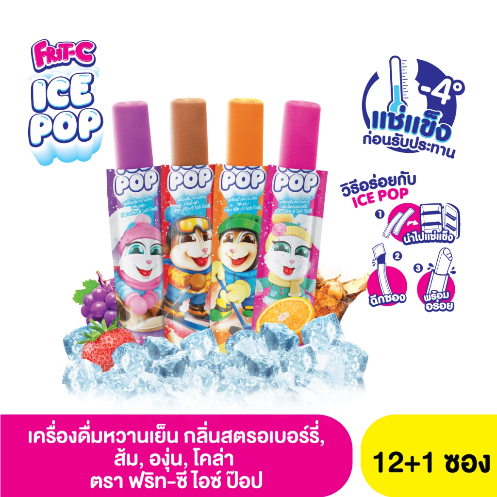 ฟริท-ซี ไอซ์ ป๊อป เครื่องดื่มหวานเย็นกลิ่นสตรอเบอร์รี่, ส้ม, องุ่น, โคล่า