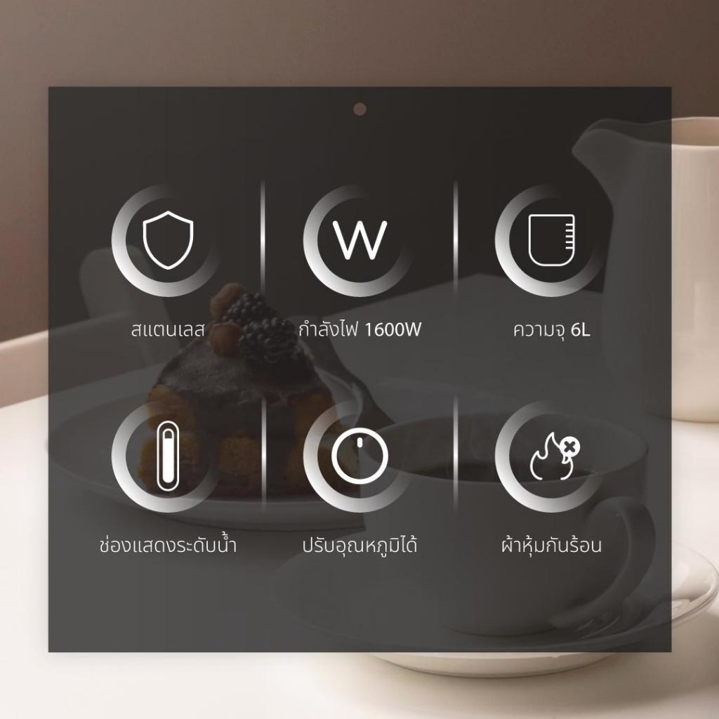 Oxygen ถังต้มน้ำไฟฟ้า รุ่น YL-06L พร้อมผ้าหุ้มกันความร้อน ขนาด 6 ลิตร เครื่องใช้ในครัว กำลังไฟฟ้า 1600 วัตต์