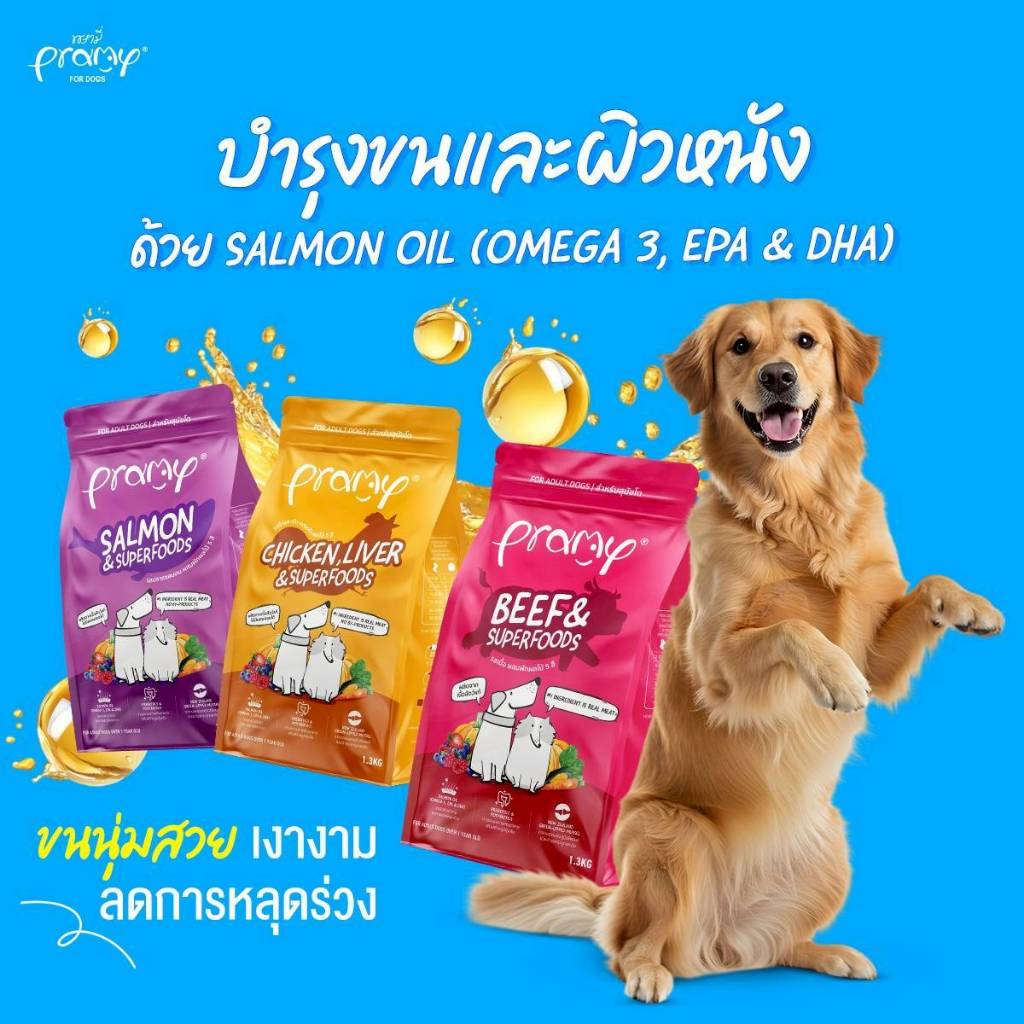 [กระสอบ] Pramy อาหารเม็ดสุนัขพรามี่ สูตรเน้นเนื้อแท้ โปรตีนสูง เสริมสร้างสุขภาพแบบรอบด้าน ขนาด 8-10kg