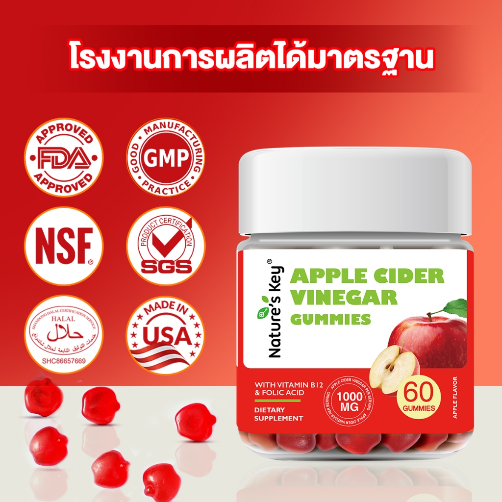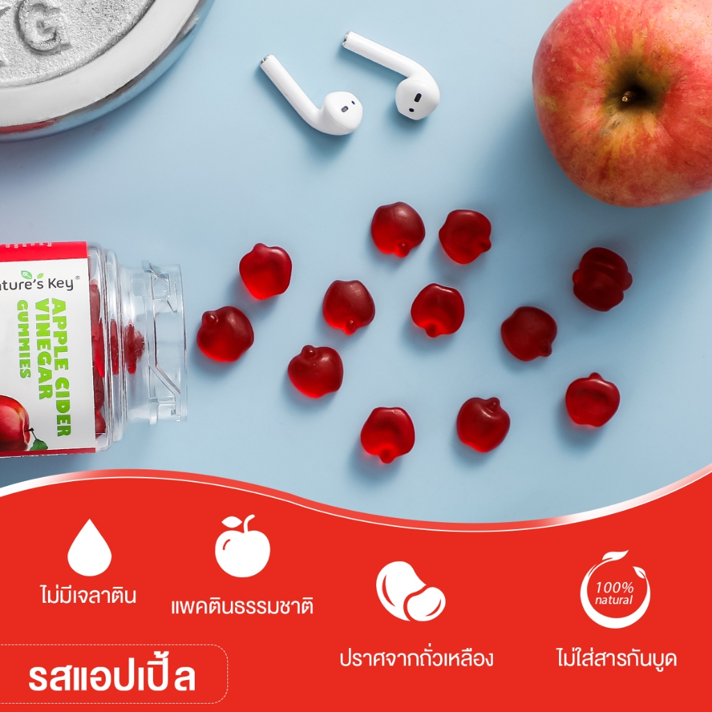[เก็บเงินปลายทาง] Nature’s Key Apple Cider Vinegar Gummies น้ำส้มสายชูหมักแอปเปิ้ล ระบบย่อยอาหารดี บำรุงลำไส้