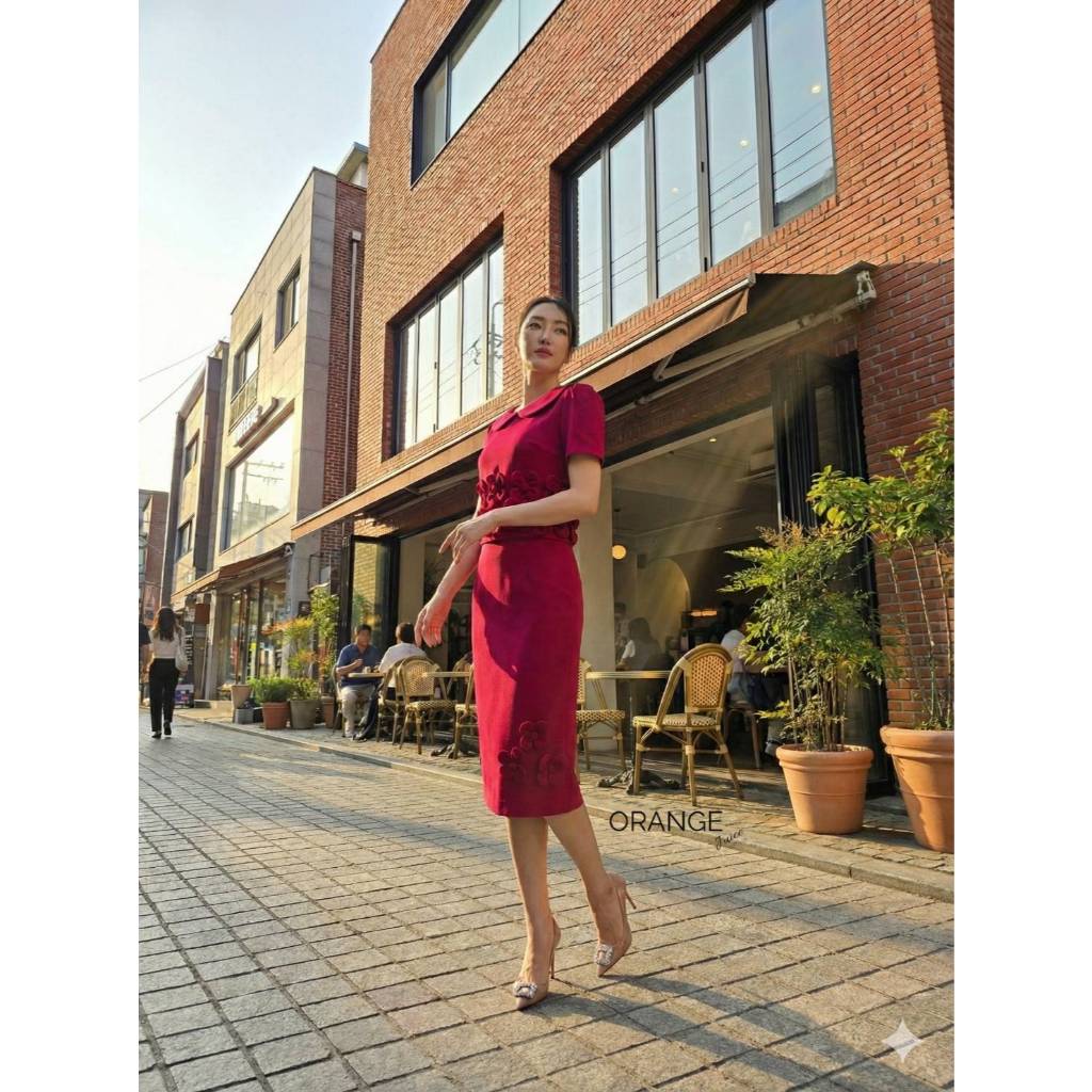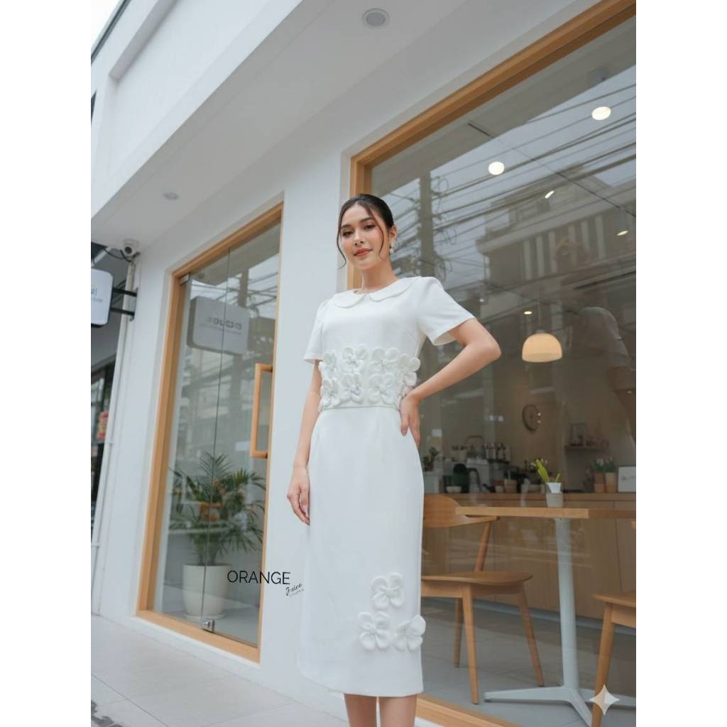 OR21931 ชุดเซ็ตทำงานเสื้อคอบัวแต่งปักดอกไม้ซิปหลัง กระโปรงทรงสอบ เรียบร้อย สุภาพ