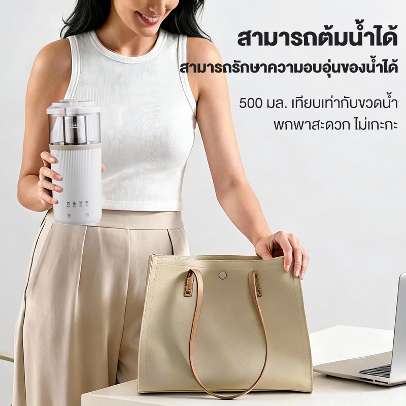 KAWU กาต้มน้ำไฟฟ้าแบบพกพา 304 สแตนเลสเกรดอาหาร อุ่นร้อนเร็ว ถ้วยร้อนอัจฉริยะสำหรับเดินทาง 500ml