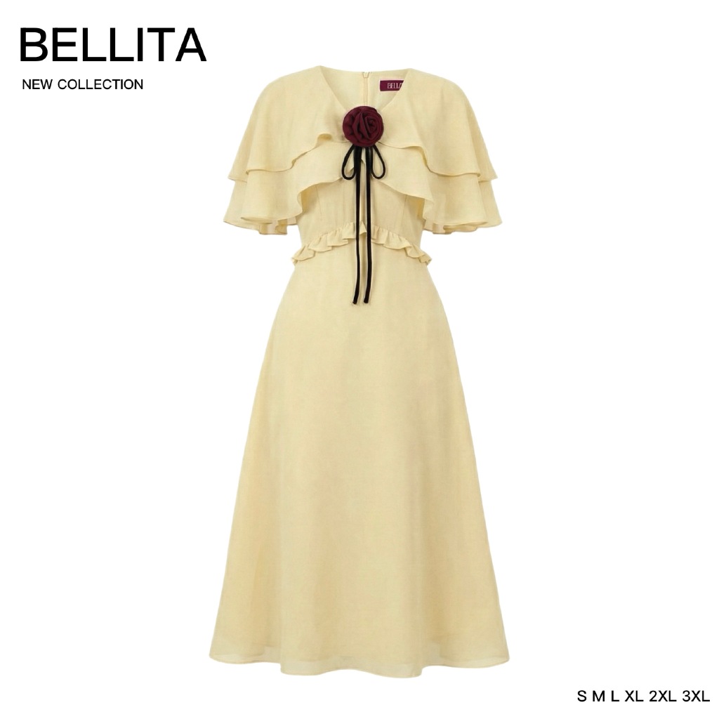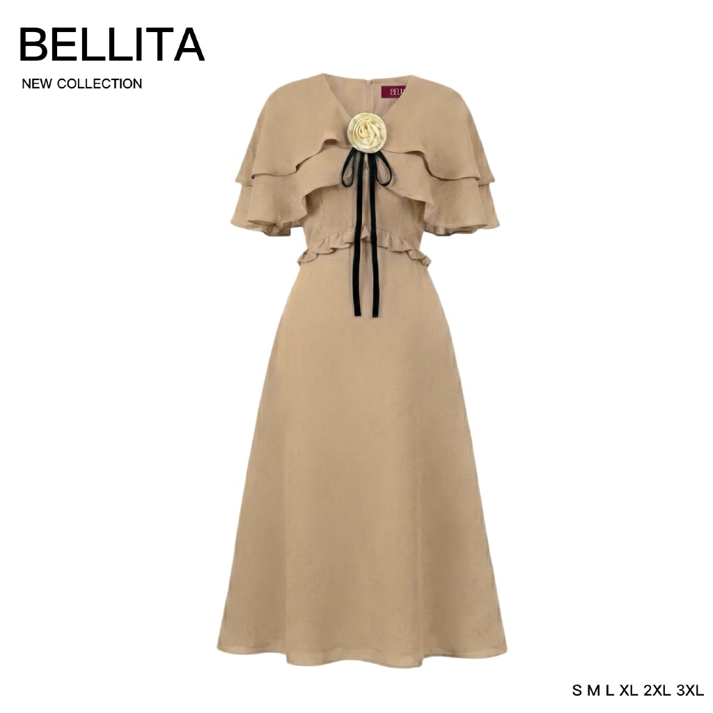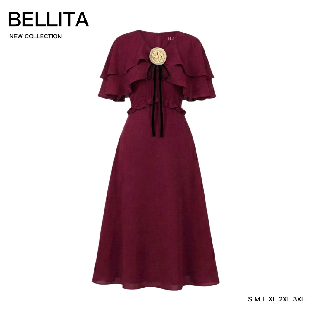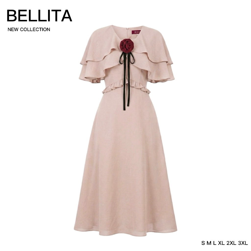 BELLITA เดรสยาวผ้าชีฟองเนื้อนิ่มซับทั้งตัว เข็มกลัดดอกไม้ ออกงาน งานแต่ง งานสำคัญต่างๆ