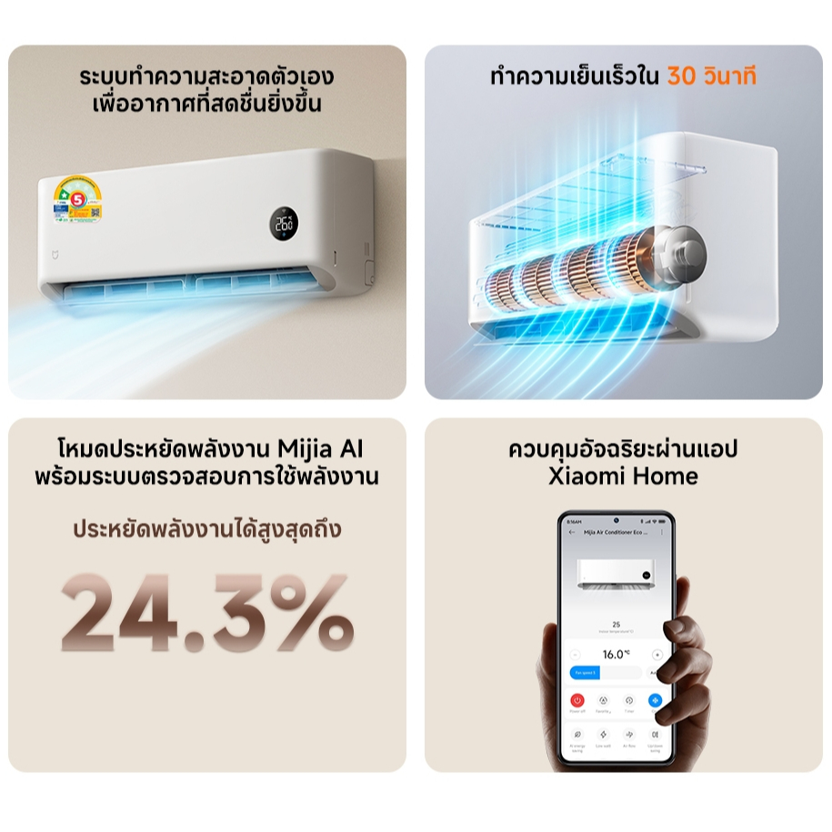 [NEW] Xiaomi Mijia แอร์ Inverter Air Conditioner Eco ขนาด 9000 12000 24000 BTU การทำความเย็น 30s การปรับอัจฉริยะด้วย