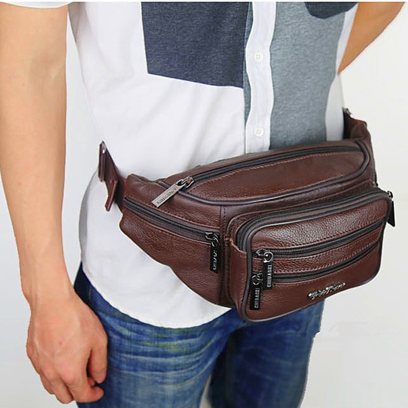 กระเป๋าคาดเอวอเนกประสงค์ แบบหนังวัวแท้ สไตล์สปอร์ต สำหรับผู้ชายและผู้หญิง