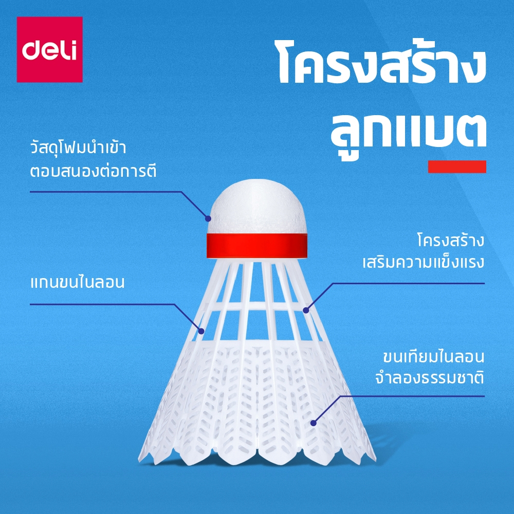 Deli ลูกแบตมินตัน ลูกแบตไนลอน แพ็ก 3 ลูก แข็งแรง ไม่เสียทรง ตีแม่น เสถียร ลู่ลม Nylon Shuttlecock