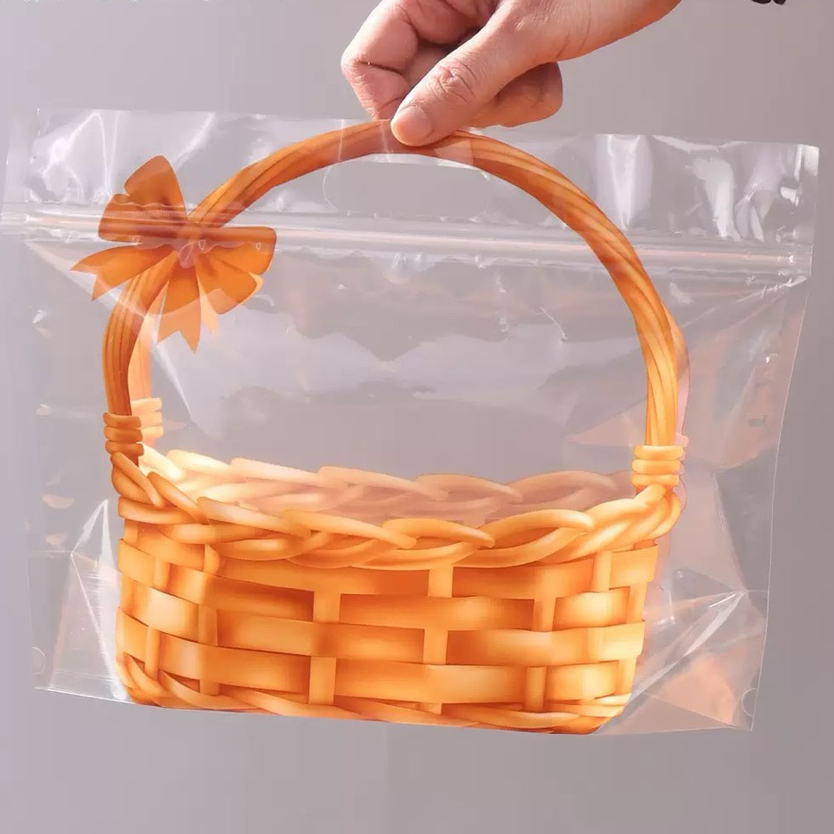 (พร้อมส่ง🇹🇭) ถุงหิ้วตระกร้าแบบซิปล็อค ถุงของขวัญ ถุงขนมปัง ถุงใส่คุกกี้ ขนม ผลไม้ ไข่ไก่ ของขวัญปีใหม่