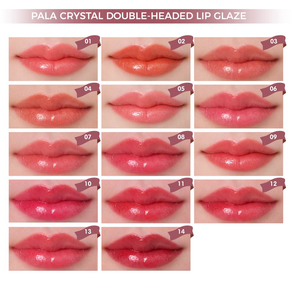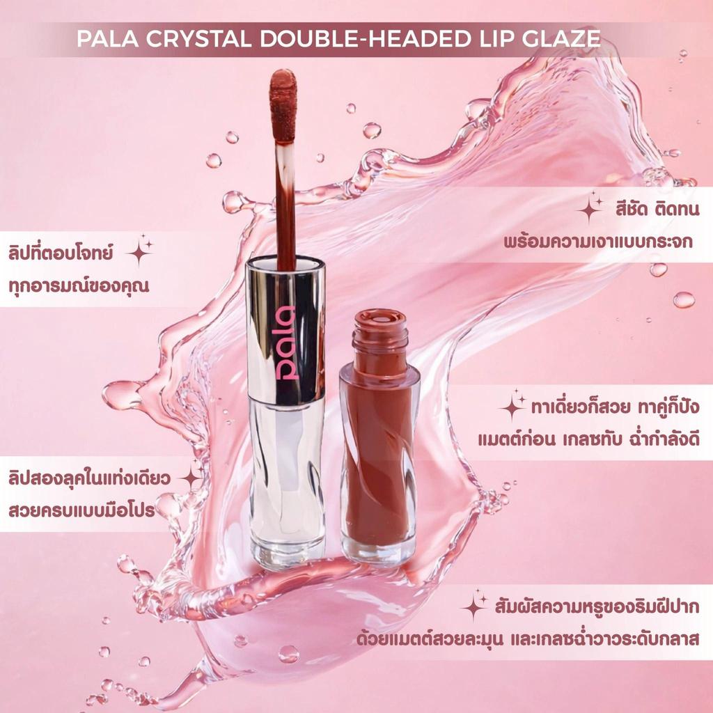 PALA ลิปคริสตัลดูโอ เนื้อแมท + เนื้อกลอส CRYSTAL DOUBLE-HEADED LIP GLAZE กันน้ำ ติดทน เกลี่ยง่าย 14เฉดสี 3g .