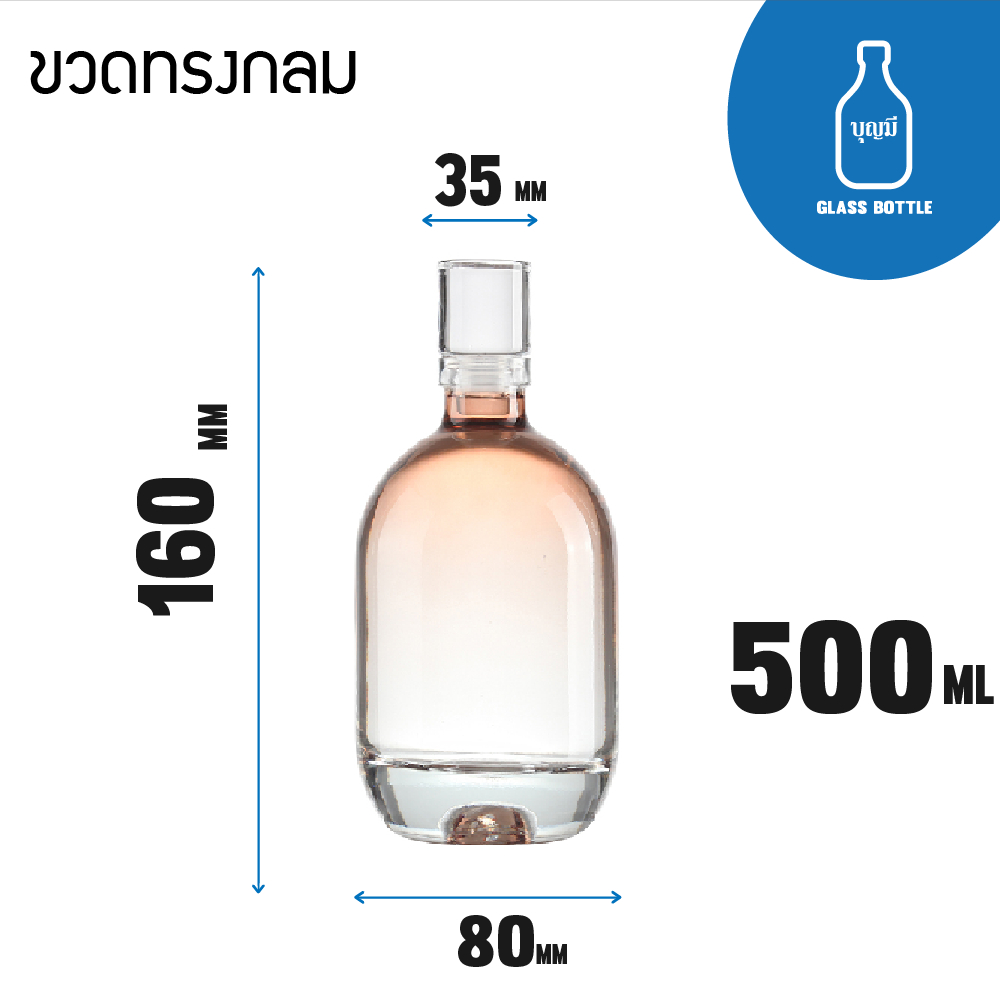 (6-12ขวด)Premium Crystal Liquor Bottle ขวดแก้ว ขวดเหล้า ขวดใส ขวดพรีเมียม ขนาด500ml(BS-0500-059-BR)