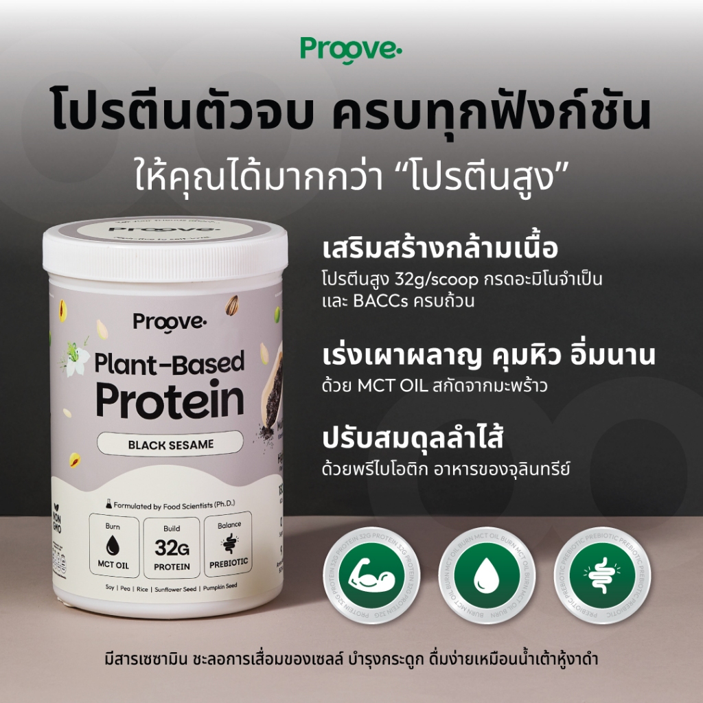 Proove โปรตีนพืช รสงาดำ (Black Sesame) มีสารต้านอนุมูลอิสระ โปรตีน 32g ช่วยเผาผลาญ อร่อย ดื่มง่าย ไม่มีน้ำตาล แคลต่ำ