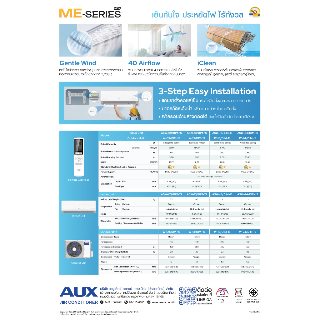 แอร์ AUX ME Series ASW-xx/DIM-1S 9000-24000BTU ติดผนัง Inverter เบอร์5 1 ดาว รีโมทไร้สาย