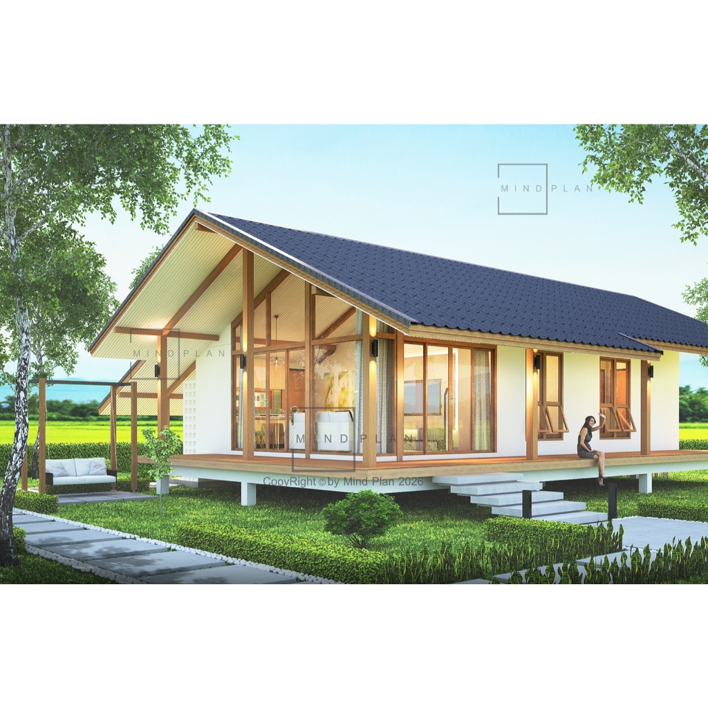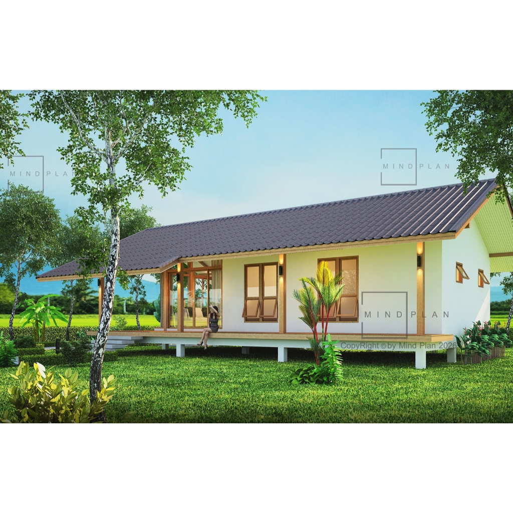 แบบบ้าน MIND PLAN C-102 สไตล์ ทรอปิคอล พื้นที่ใช้สอย 107 ตร.ม.ค่าก่อสร้าง 1.0-1.2 ล้านบาท(ปรับแบบได้)