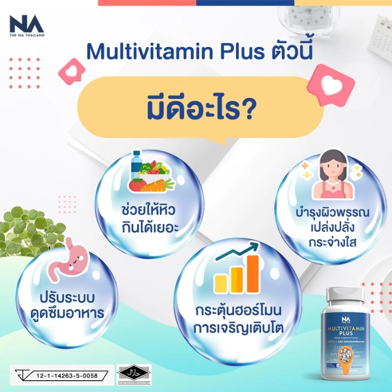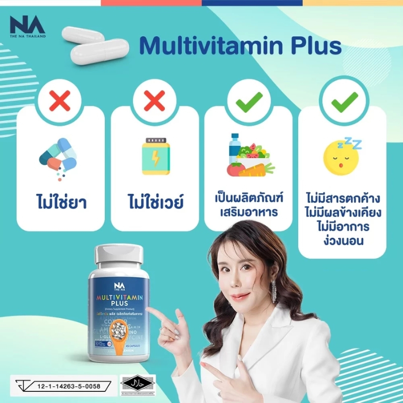 โปรพิเศษ! NA Multivitamin Plus วิตามินรวมครบสูตร เสริมภูมิคุ้มกัน บำรุงสมอง ผิวใส สุขภาพดีในขวดเดียว ทานง่าย ส่งฟรีทั่วไ