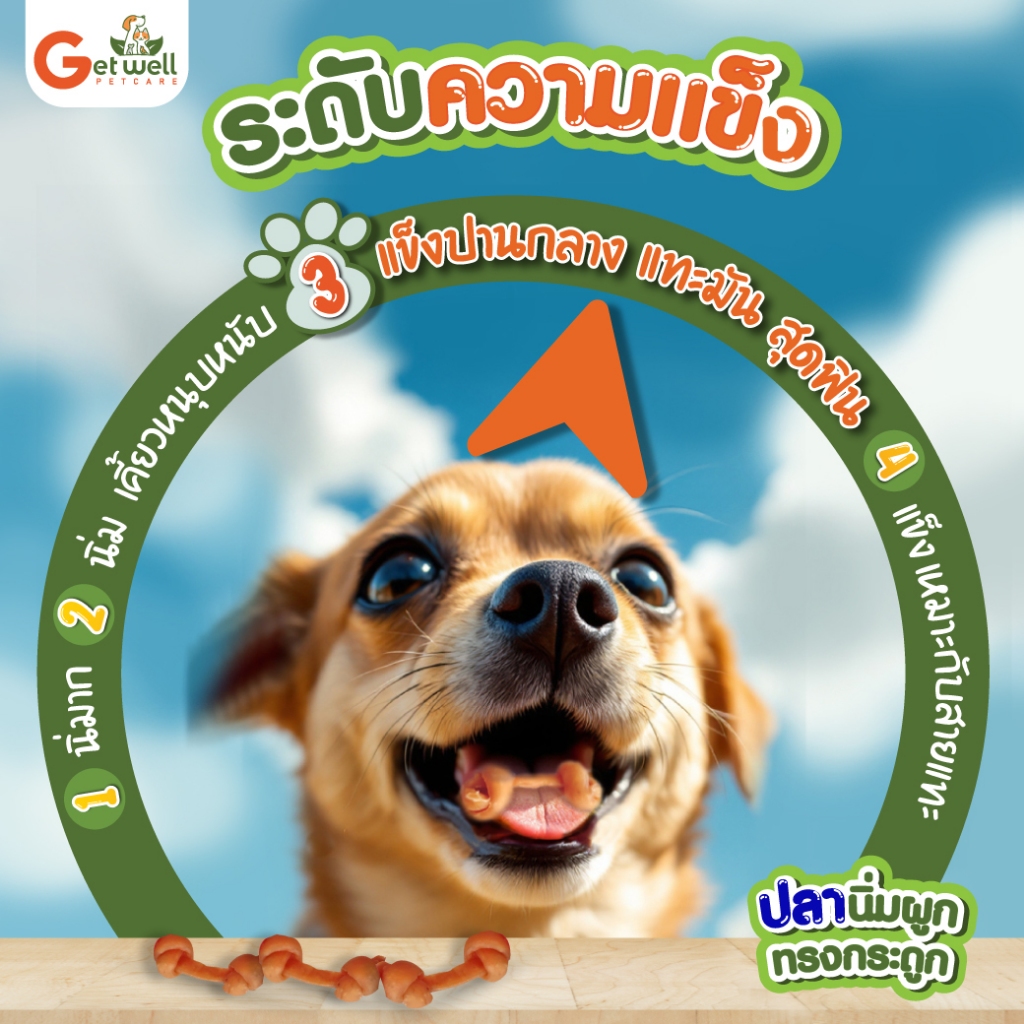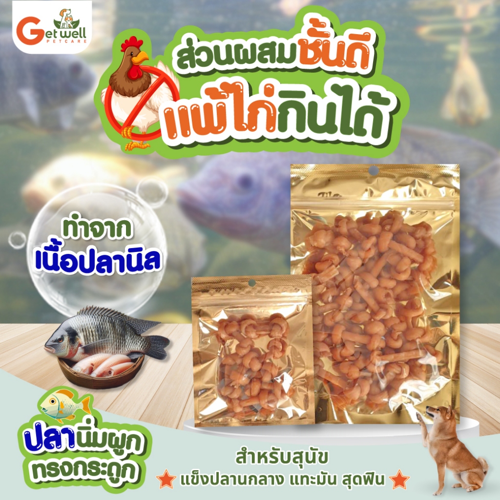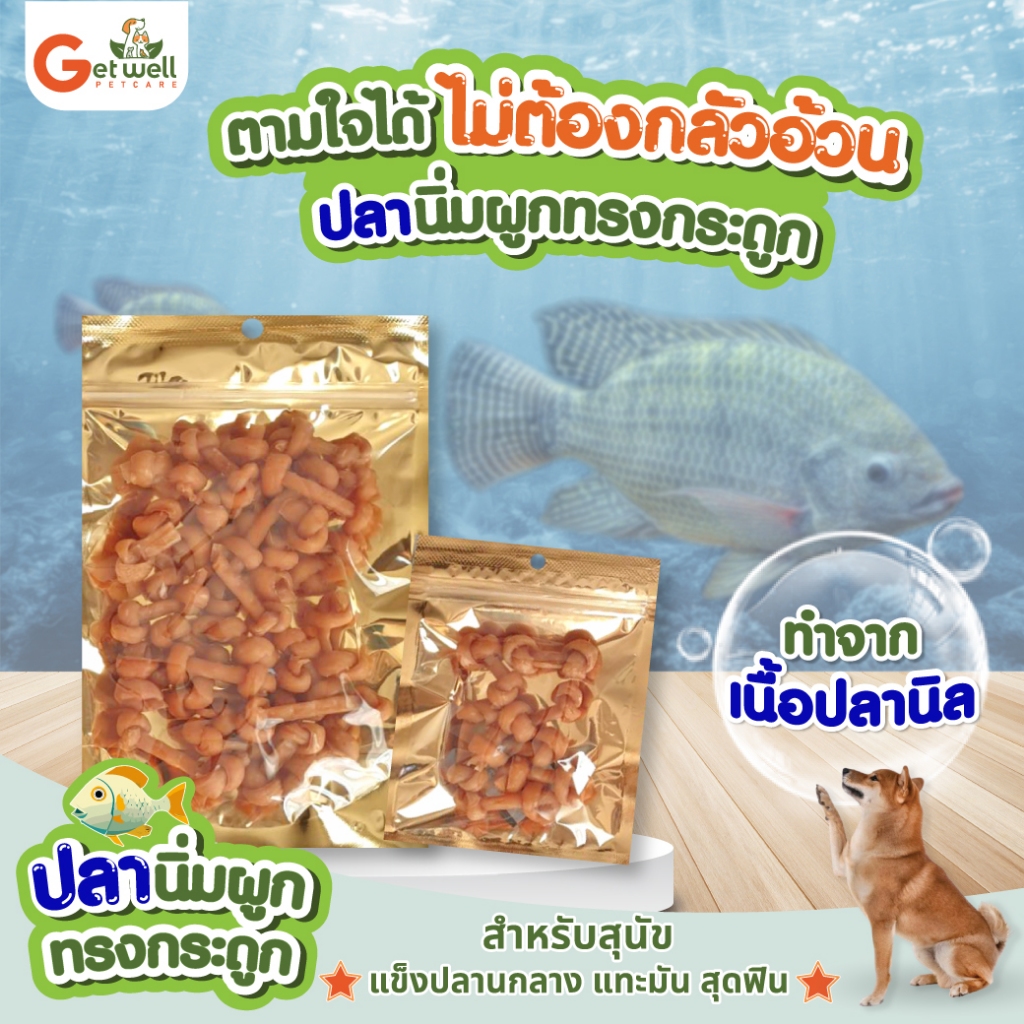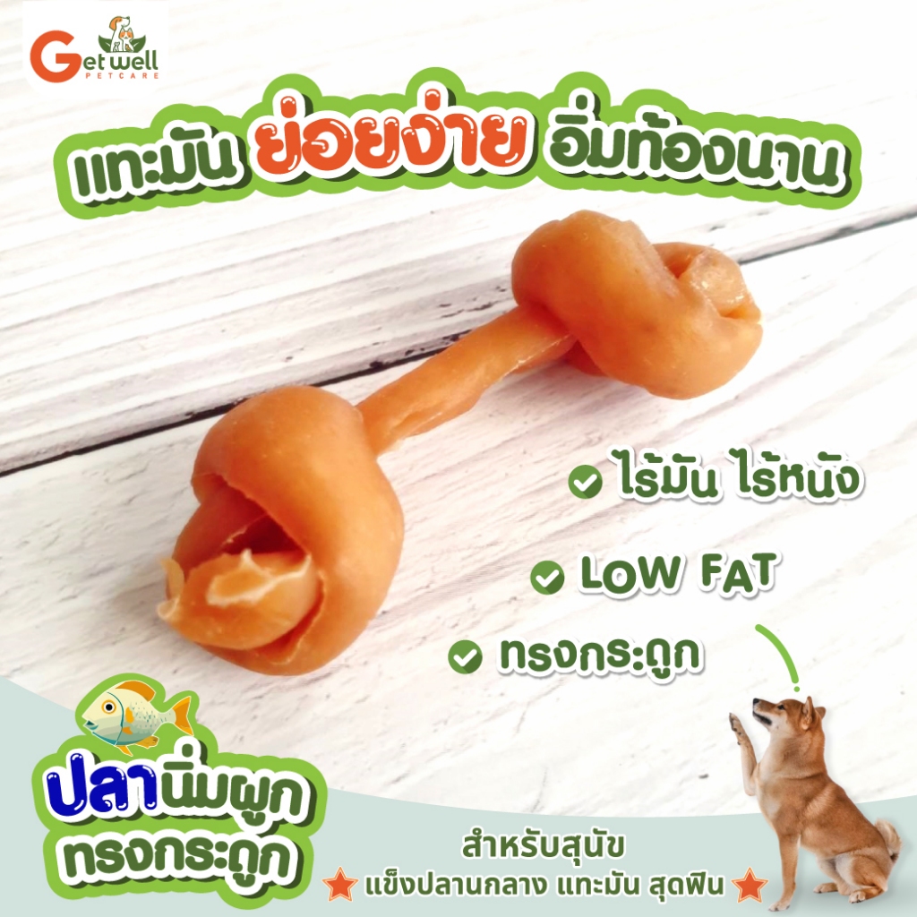 Get Well ปลานิ่มผูกทรงกระดูก ขนมหมา ขนมแมว ไม่ปรุงรส แพ้ไก่ แพ้แป้ง กินได้