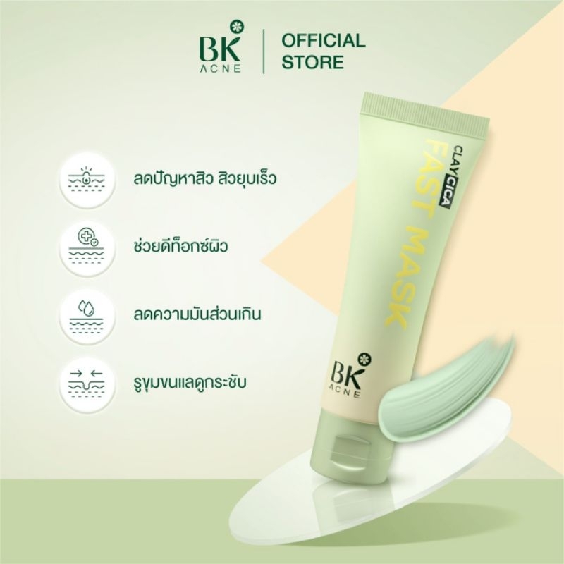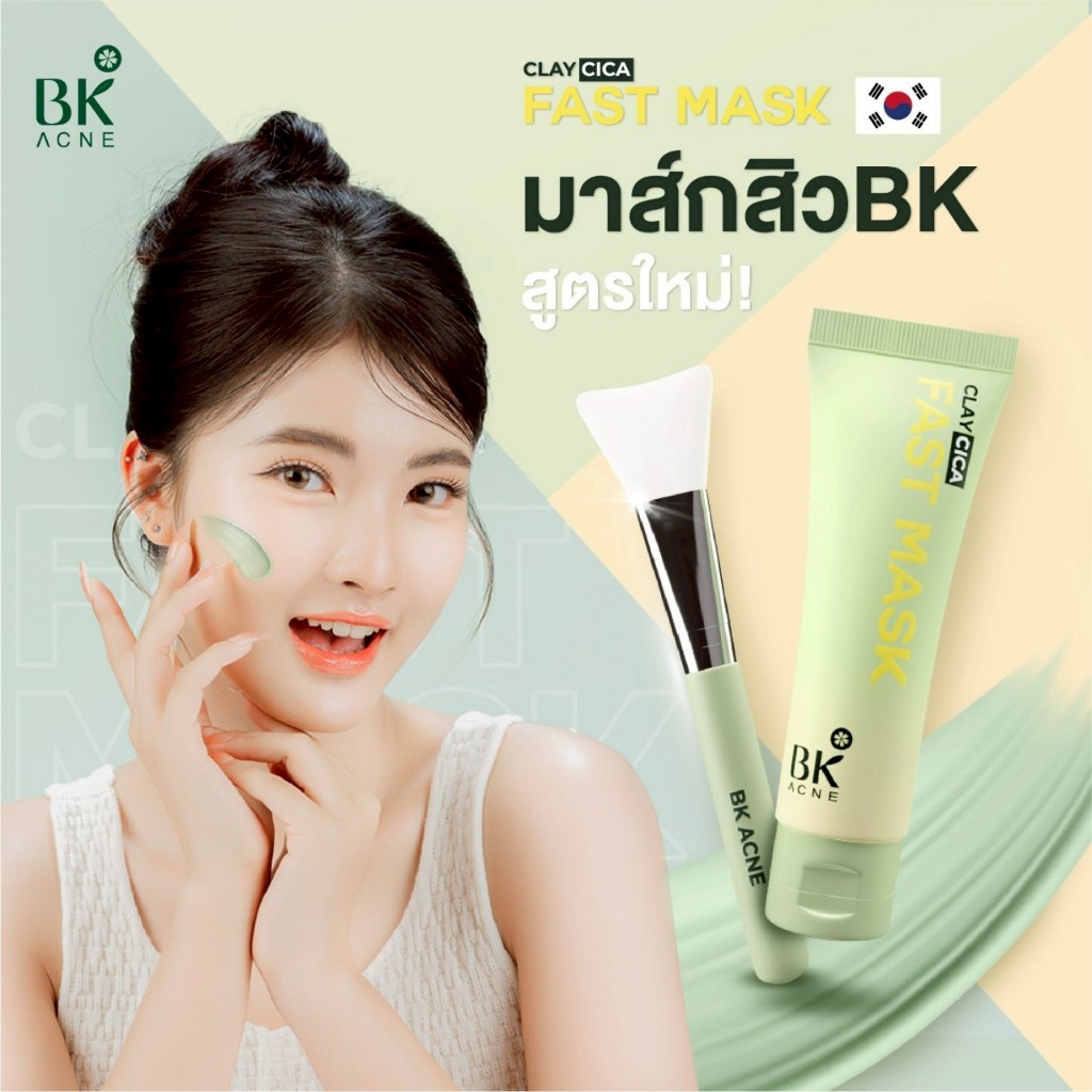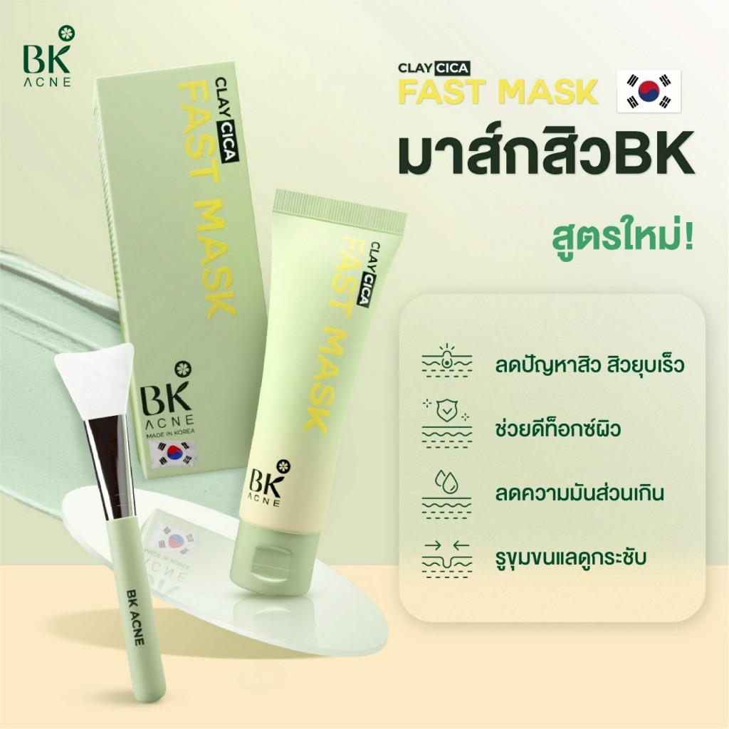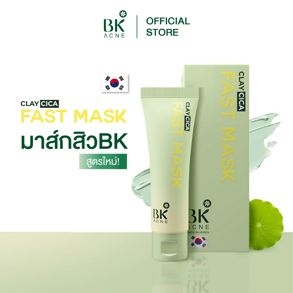 BK ACNE CLAY CICA FAST MASK มาส์กสิว มาส์กหน้าลดสิว ลดความมันมาร์คโคลน เเถมไม้พายมาส์กหน้า 50ml.