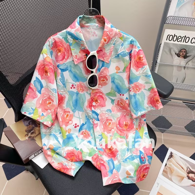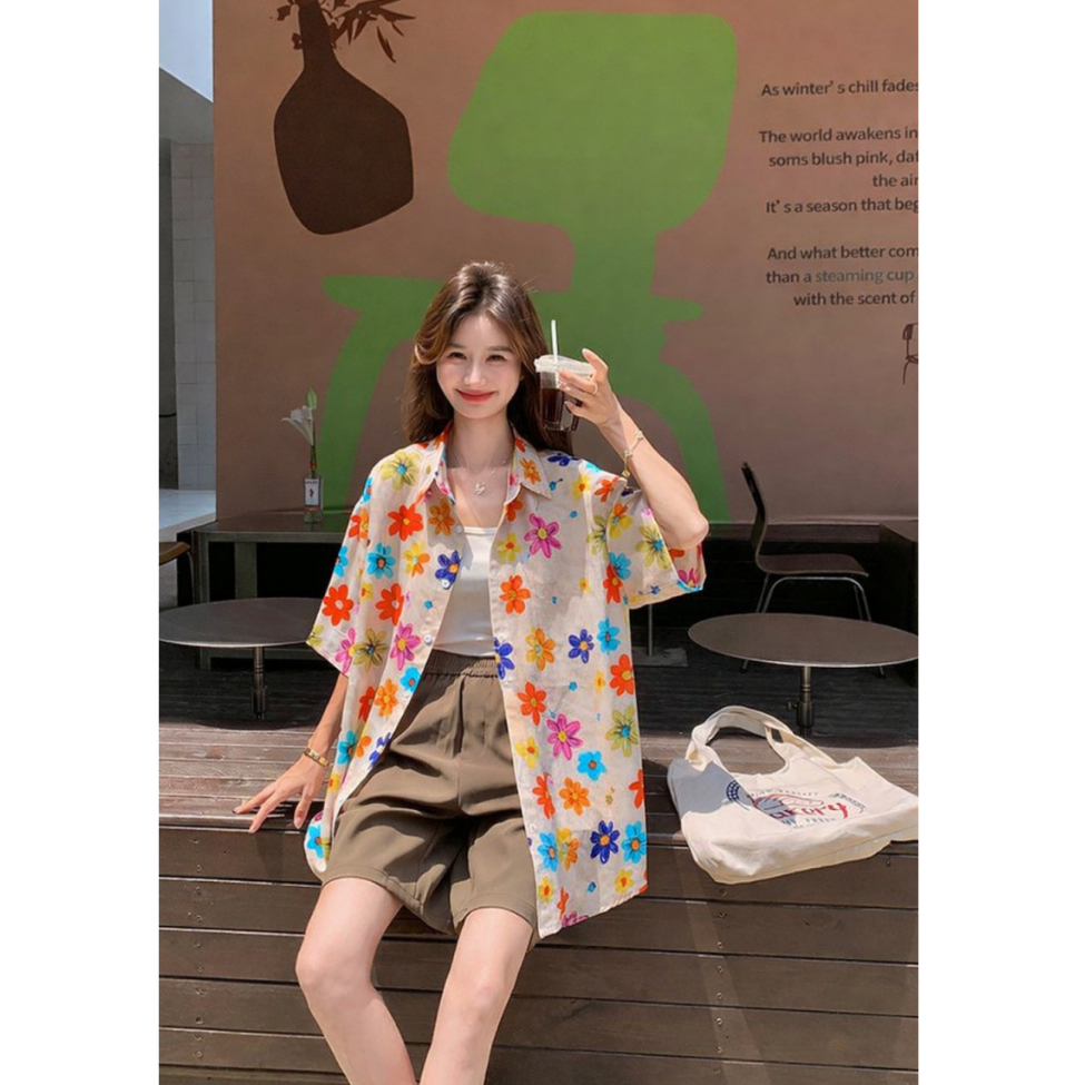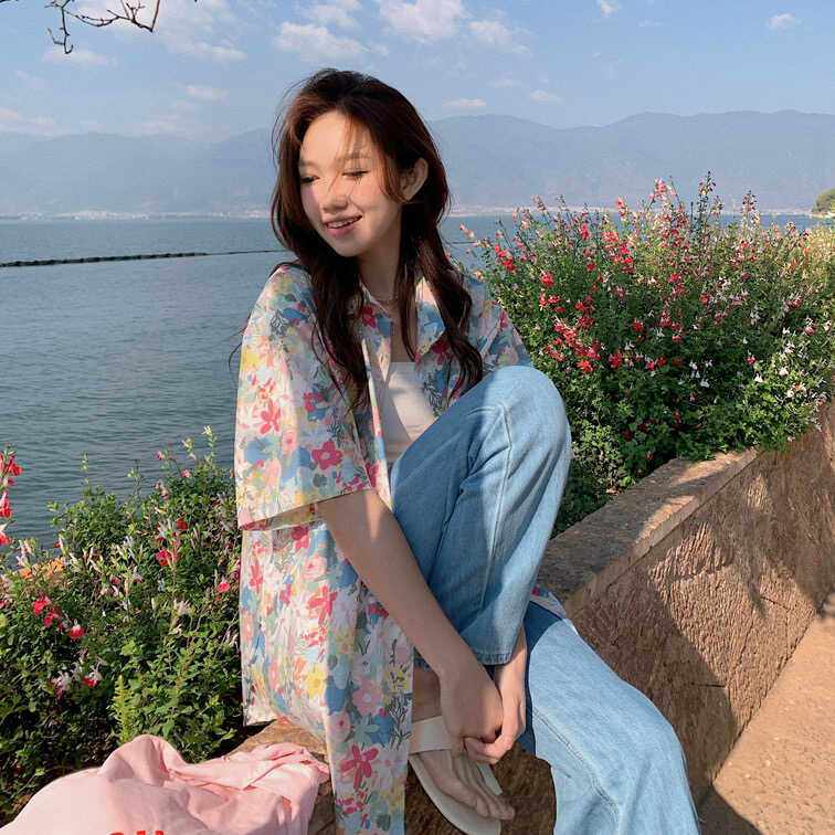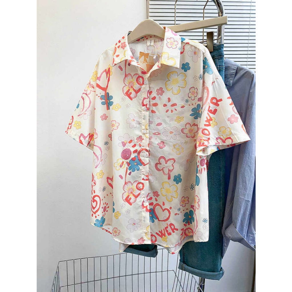 cherryshop พร้อมส่ง เสื้อแขนสั้นลายดอกไม้สุดน่ารักสำหรับผู้หญิงใหม่ช่วงซัมเมอร์ ทรงหลวม เนื้อผ้าบางใส่สบาย เทศกาลสาดน้ำ