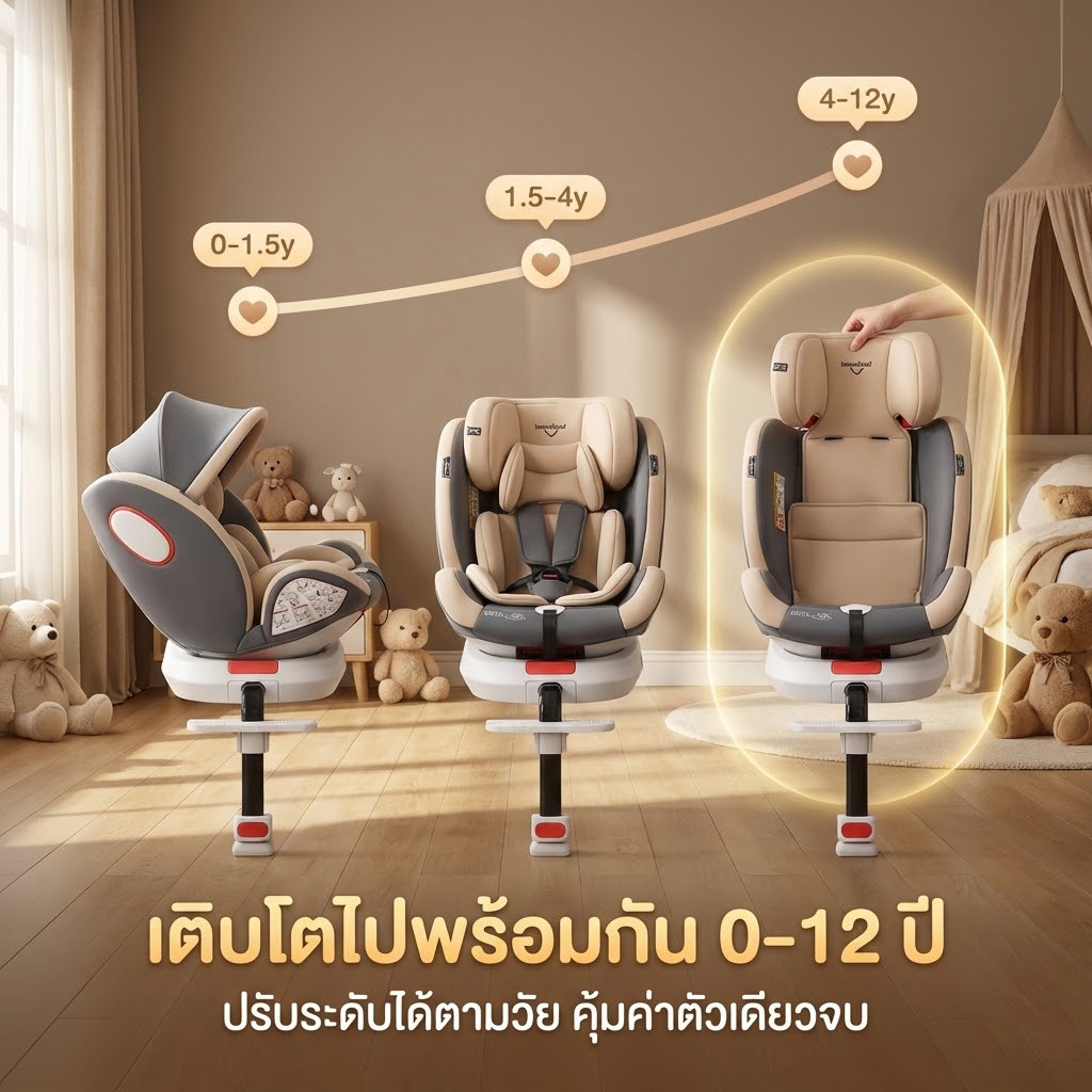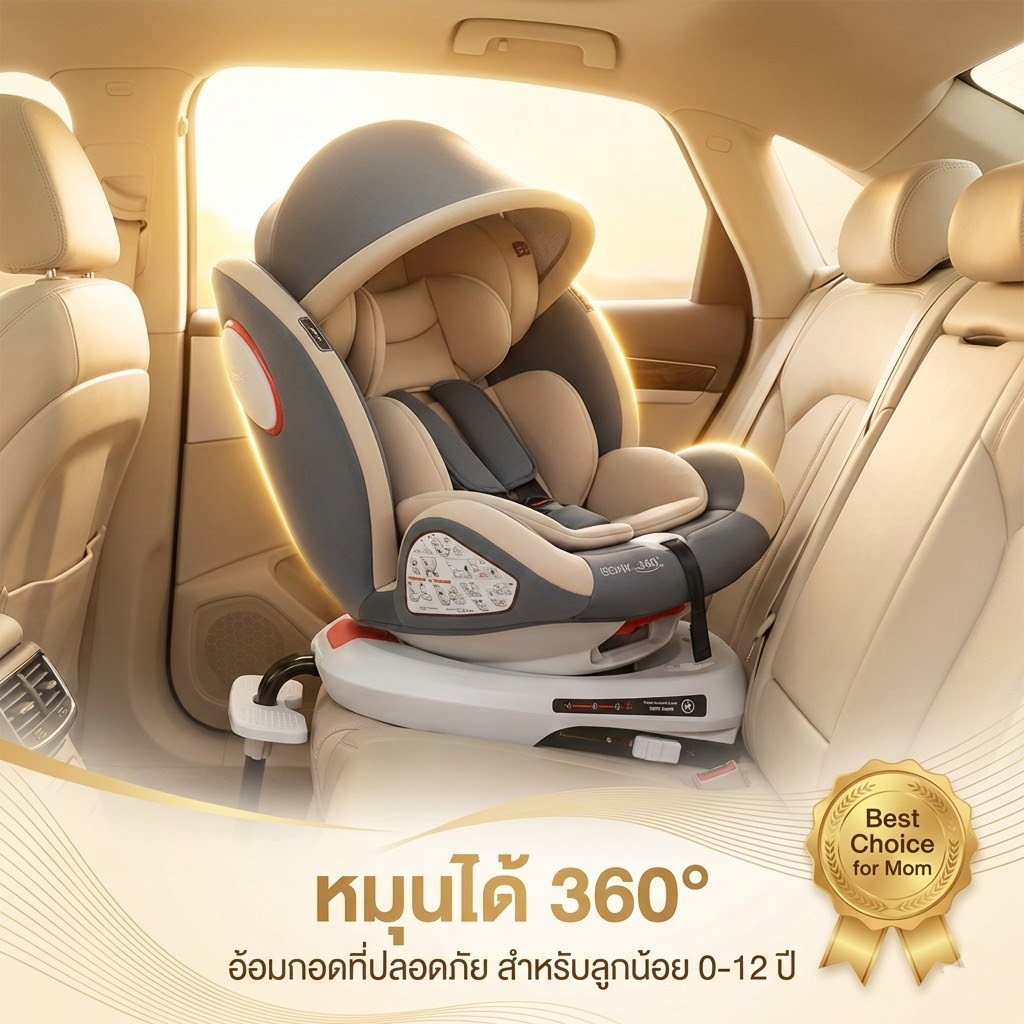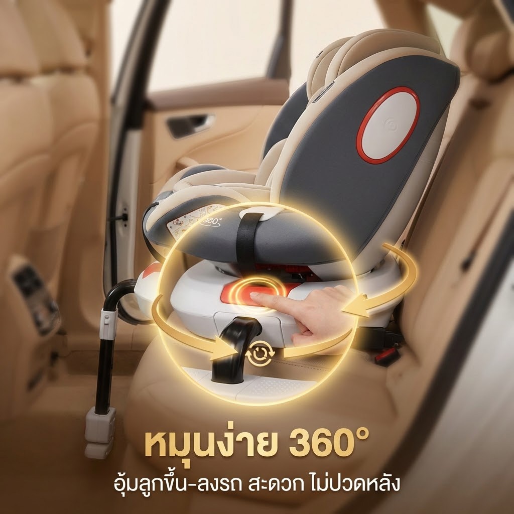Beige คาร์ซีทเด็ก คาร์ซีท หมุนอิสระ 360°อินเตอร์เฟสisofix เหมาะสำหรับเด็กแรกเกิด-12ปี Car seat