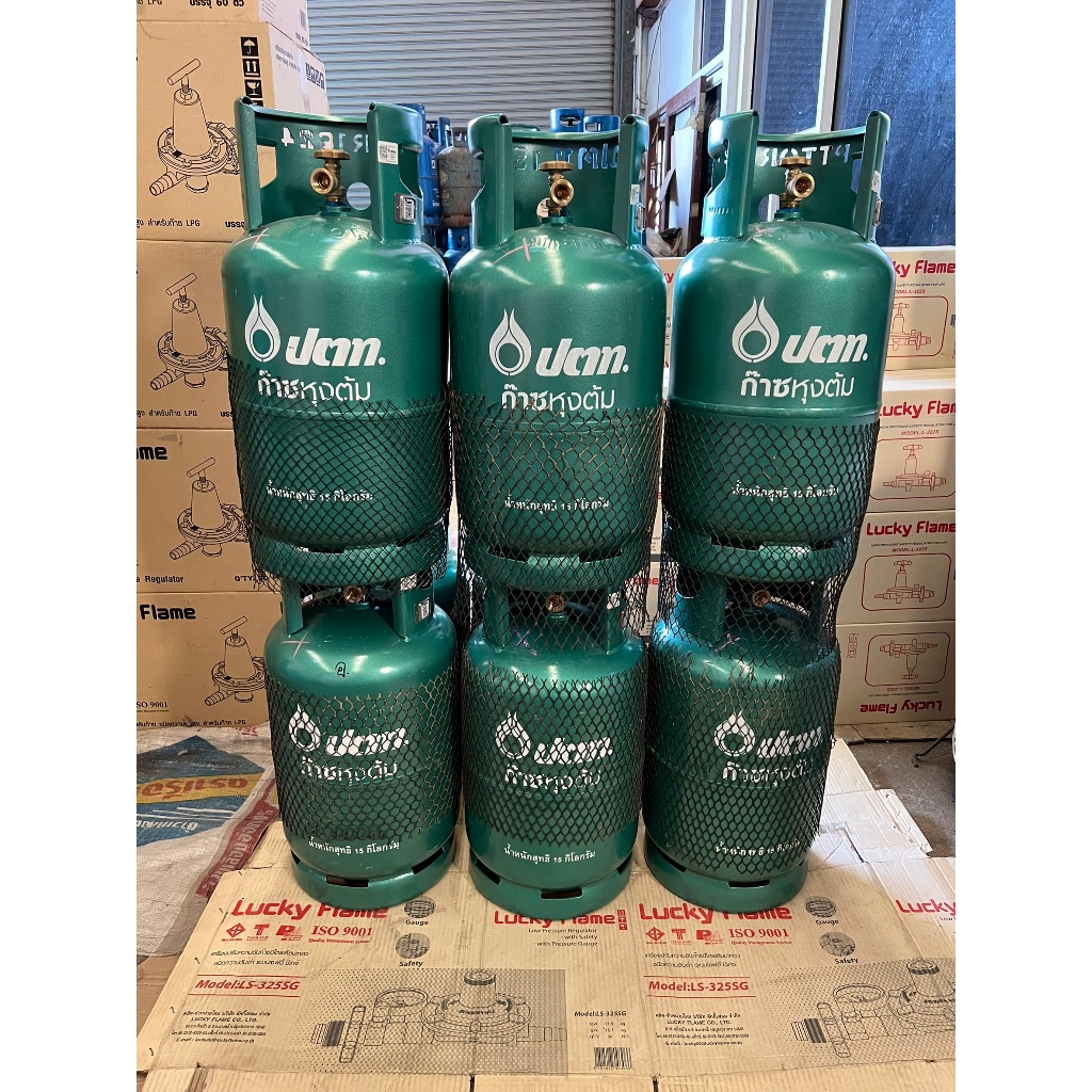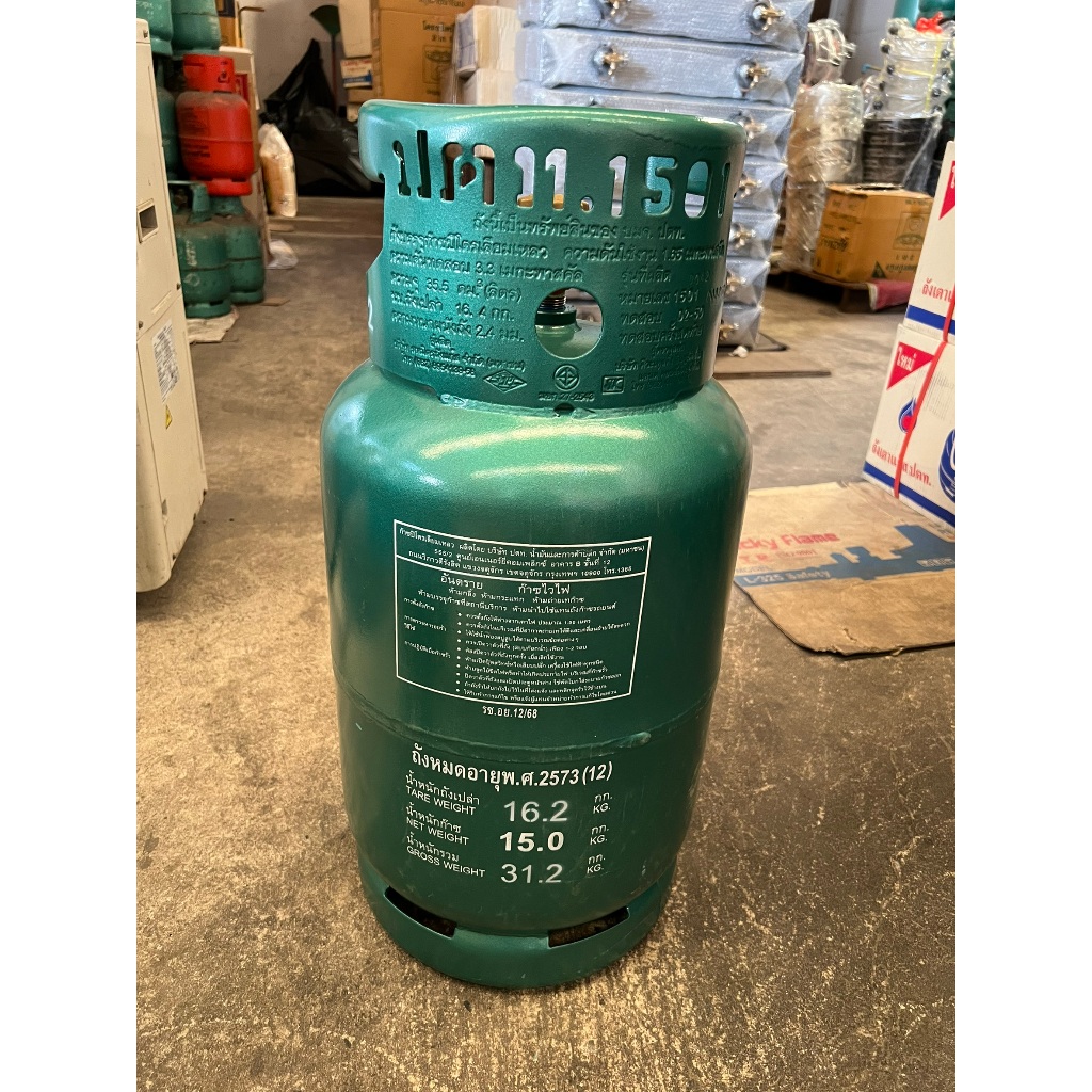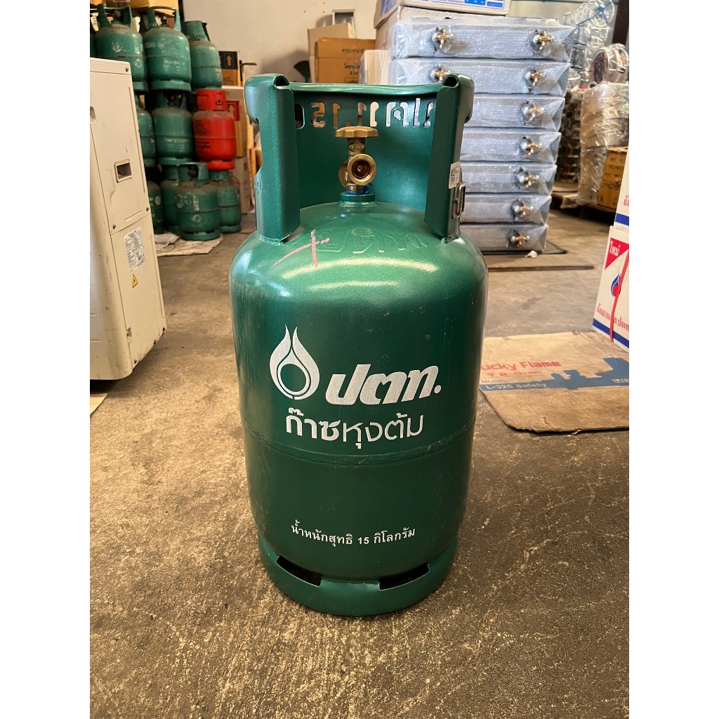 ถังแก๊สเปล่า ปตท. 15 กก. ไม่รวมน้ำแก๊ส ซ่อมเหมือนใหม่ รุ่นใหม่มีคิวอาร์โค้ดสแตนเลส หมดอายุ ปี 2573