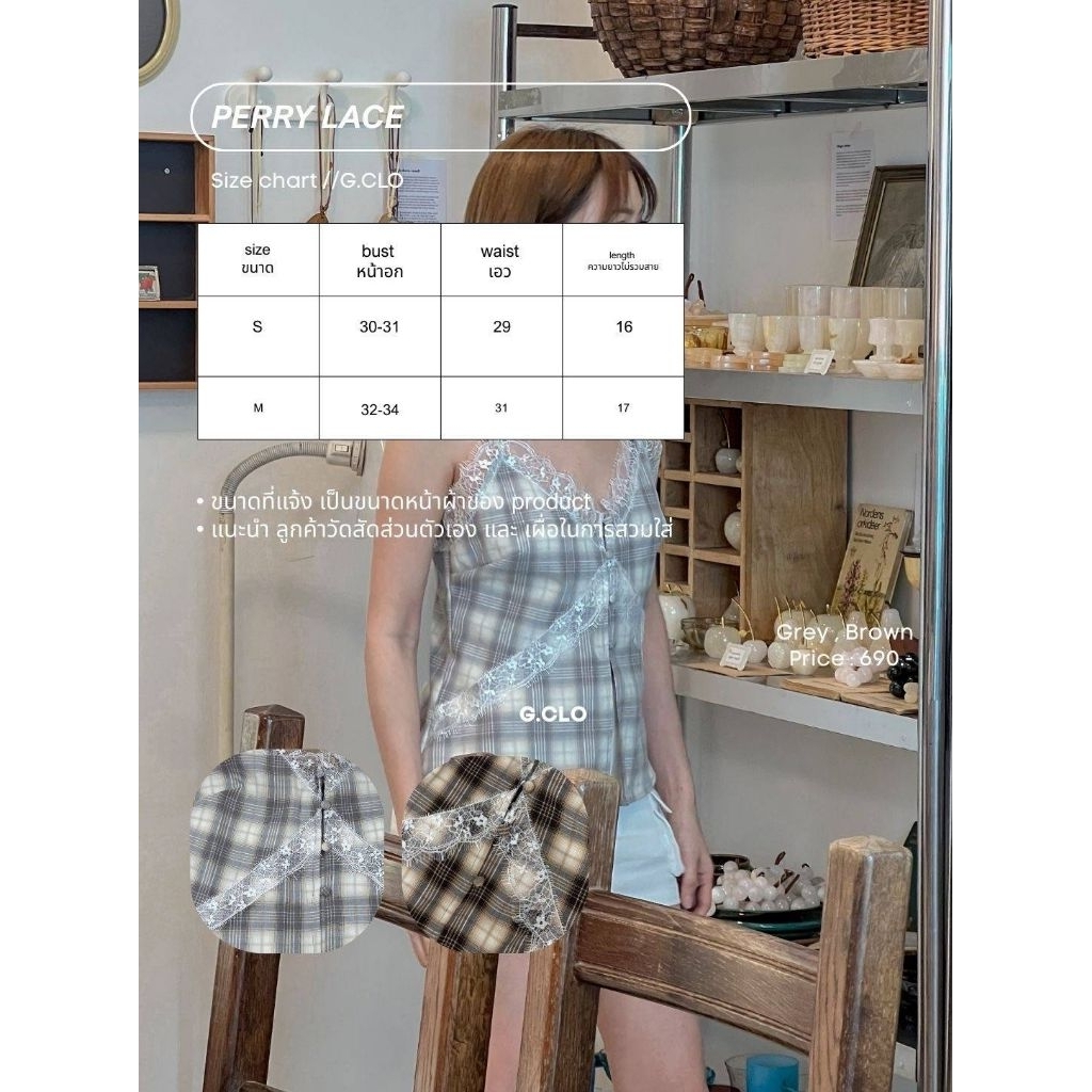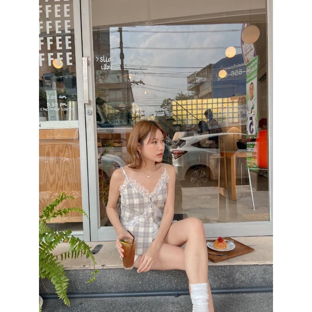 Glamclothes PERRY LACE TOP เสื้อสายเดี่ยวลูกไม้เฉียงตัดลายผ้า PLAID