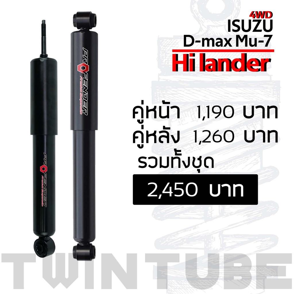 Profender โช้คอัพแก๊สกึ่งน้ำมัน D-max mu-7 4WD (ทอชั่นบาร์) Hilander std หนึบขึ้น 15%