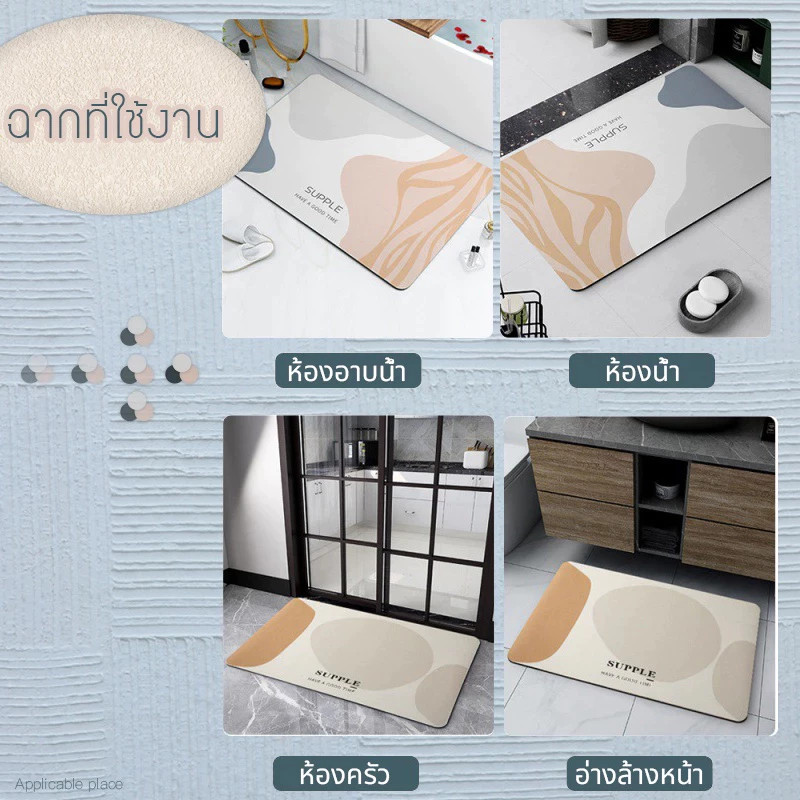 DH พรมเช็ดเท้าไดอะตอม เกรดA พรมห้องน้ำ แห้งไว ดูดซับน้ำดี กันลื่น ไม่อับชื้น ทำความสะอาดง่าย เหมาะกับห้องน้ำ ห้องครัว