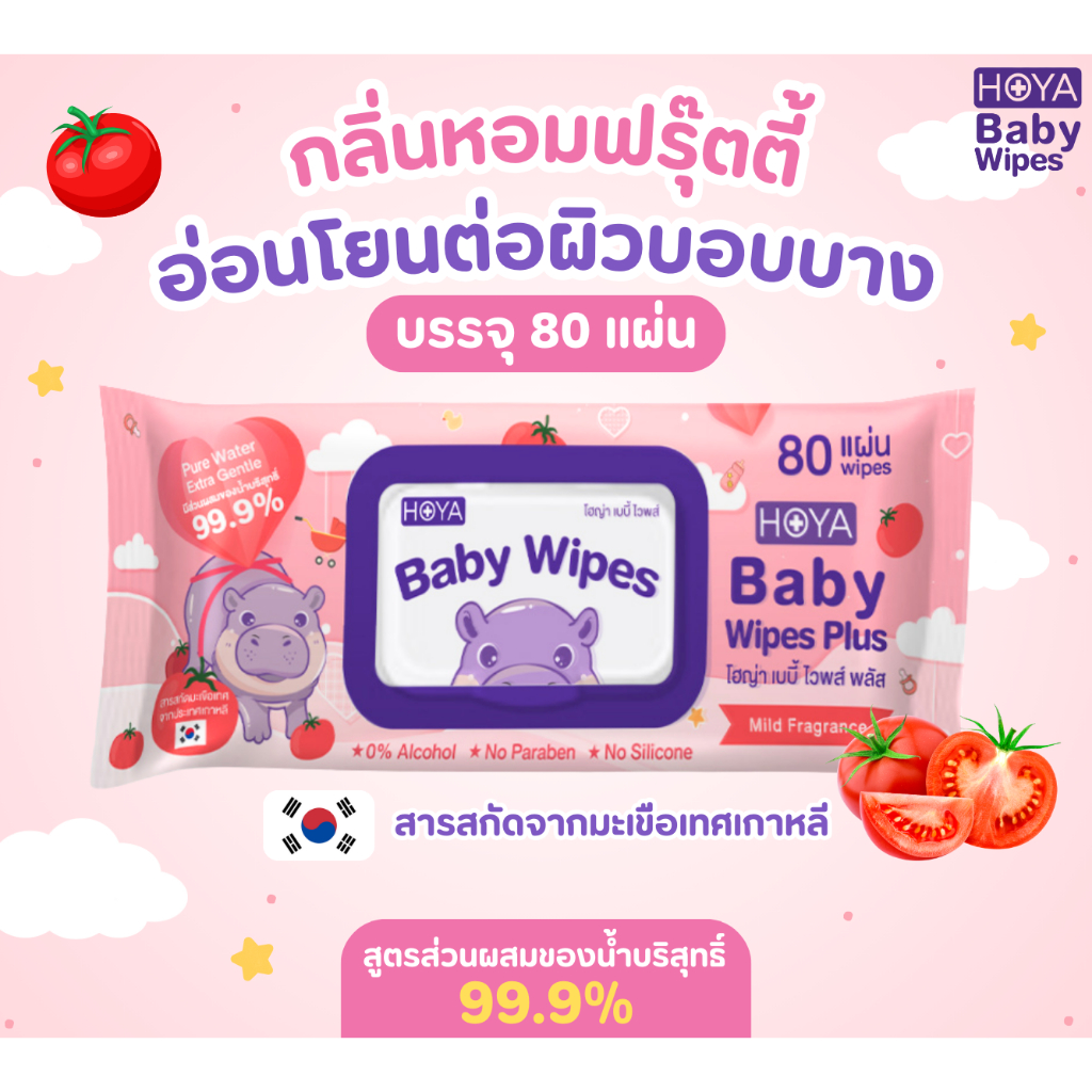 (5แถม5) HOYA baby ทิชชู่เปียกสูตรมีกลิ่นและไม่มีกลิ่น 80แผ่น/ห่อ สูตรอ่อนโยนผ้านุ่มชุ่มชื้นไม่บาดผิว