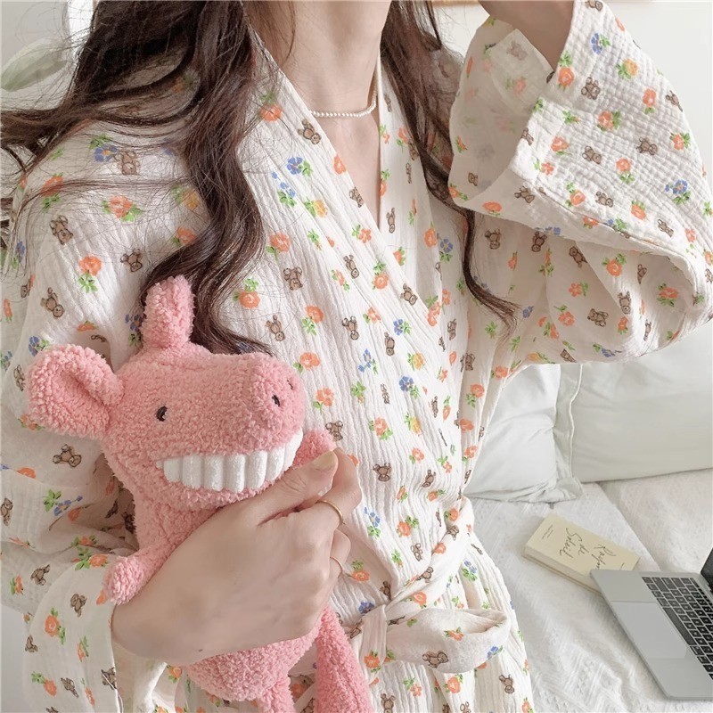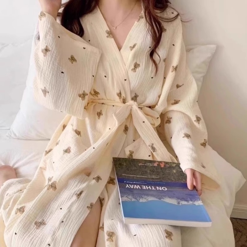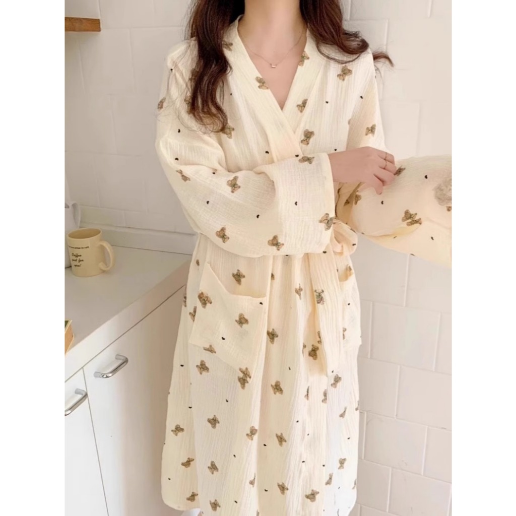 ชุดนอนเซ็กซี่🍒🍒เสื้อคลุมอาบน้ำ แขนยาว ชุดนอนผู้หญิง ลายหมี สไตล์เสื้อคลุมอาบน้ำ ทรงหลวม ผ้าใส่สบาย ชุดอยู่บ้าน ส่งจากไทย