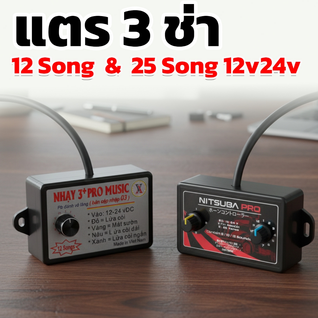 สวิตช์แตร ตัวควบคุมแตรไฟฟ้า แตร3ช่า ตั้งค่าเสียงได้12-25 แบบ 12V/24V สำหรับรถบรรทุก